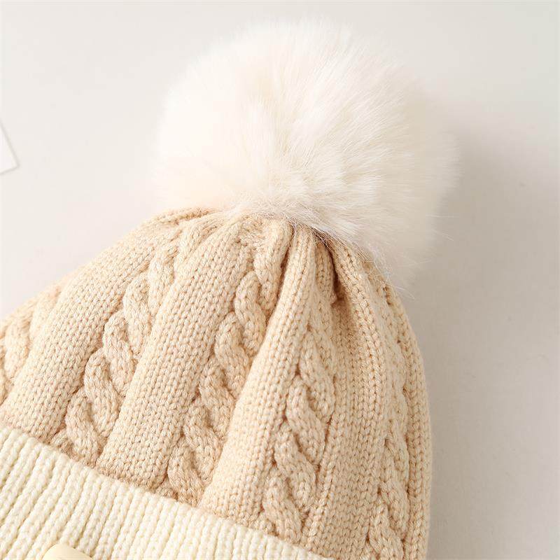 hugz儿童帽子围巾秋冬户外男孩女孩保暖针织毛线帽护耳防风熊仔帽