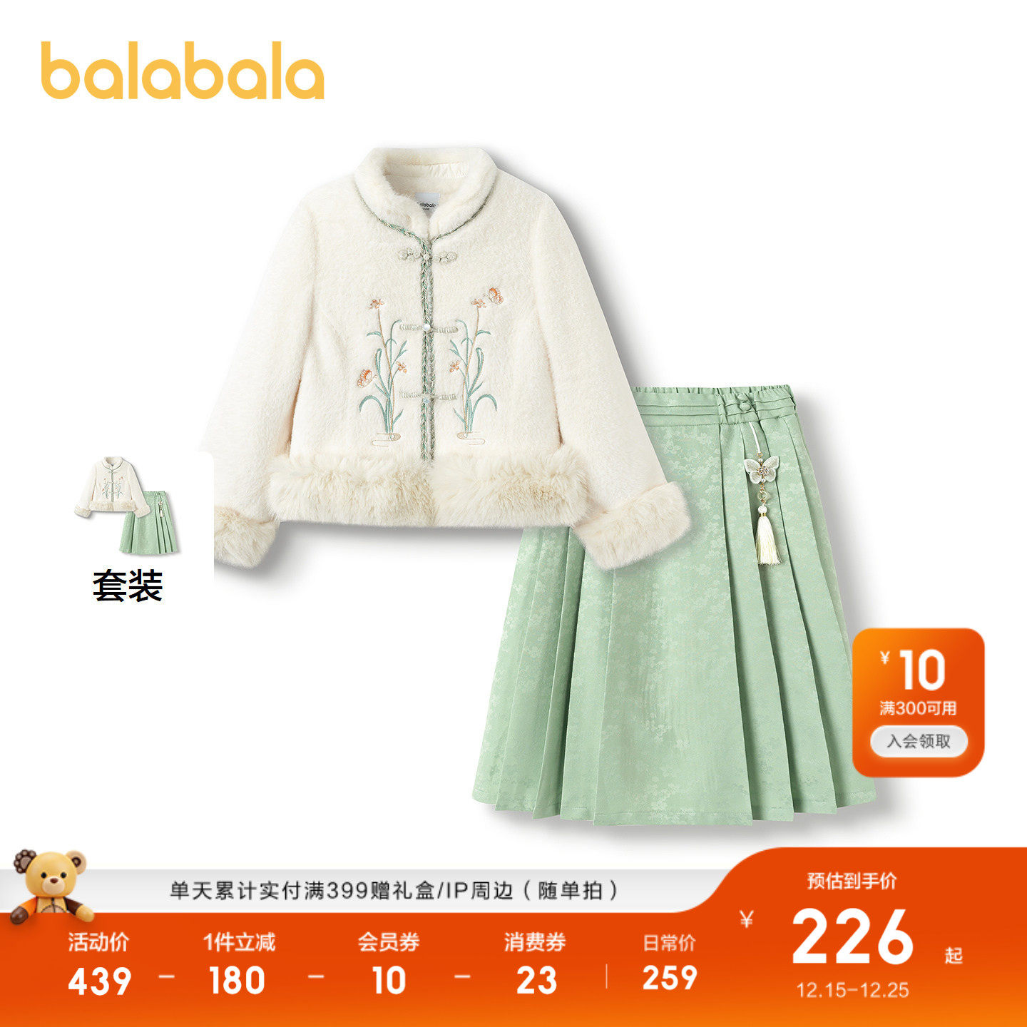 巴拉巴拉童装女童马面裙套装冬长袖两件套新中式刺绣精致洋气时尚
