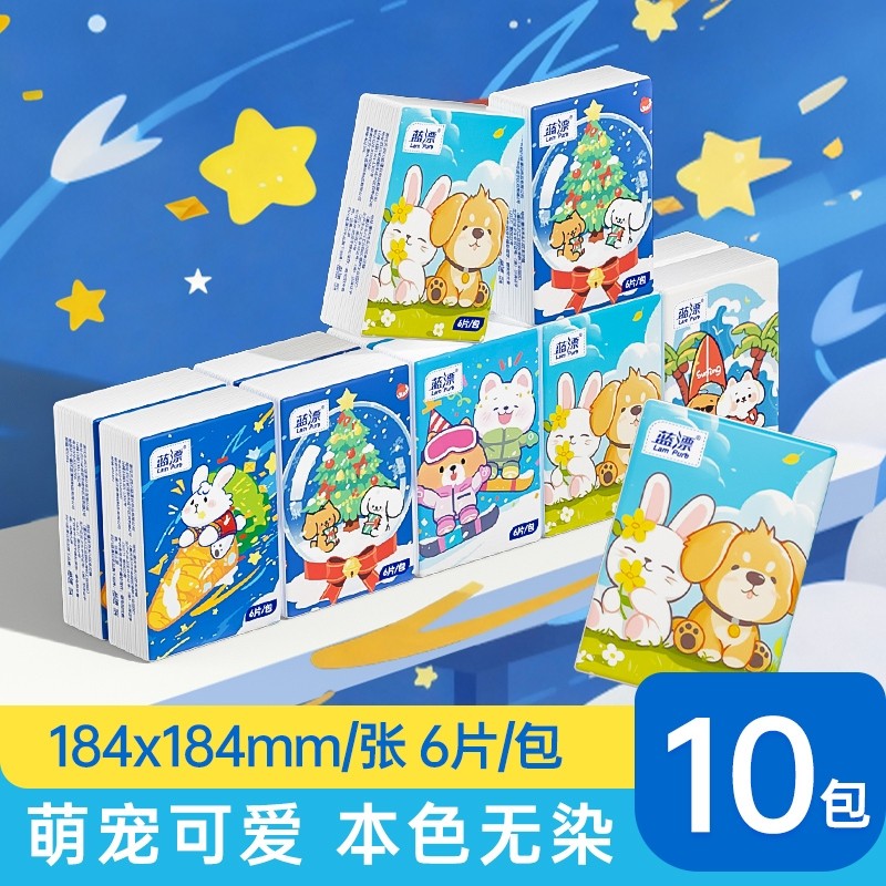 手帕纸大包加厚整箱卡通10连包家用儿童抽纸便携式旅游餐巾抽纸巾