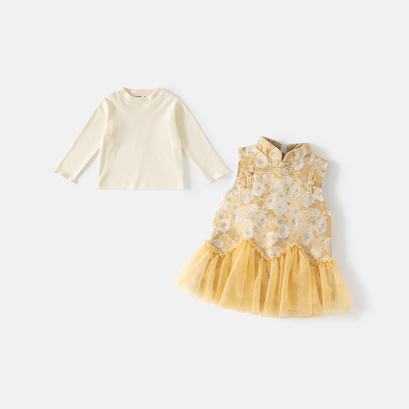 班喜迪女童连衣裙春装2026年新款新中式网纱裙宝宝周岁礼服旗袍裙