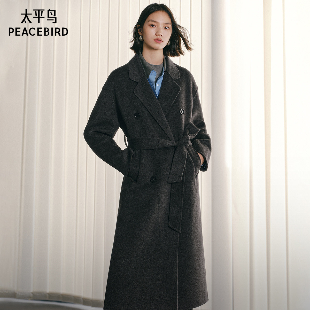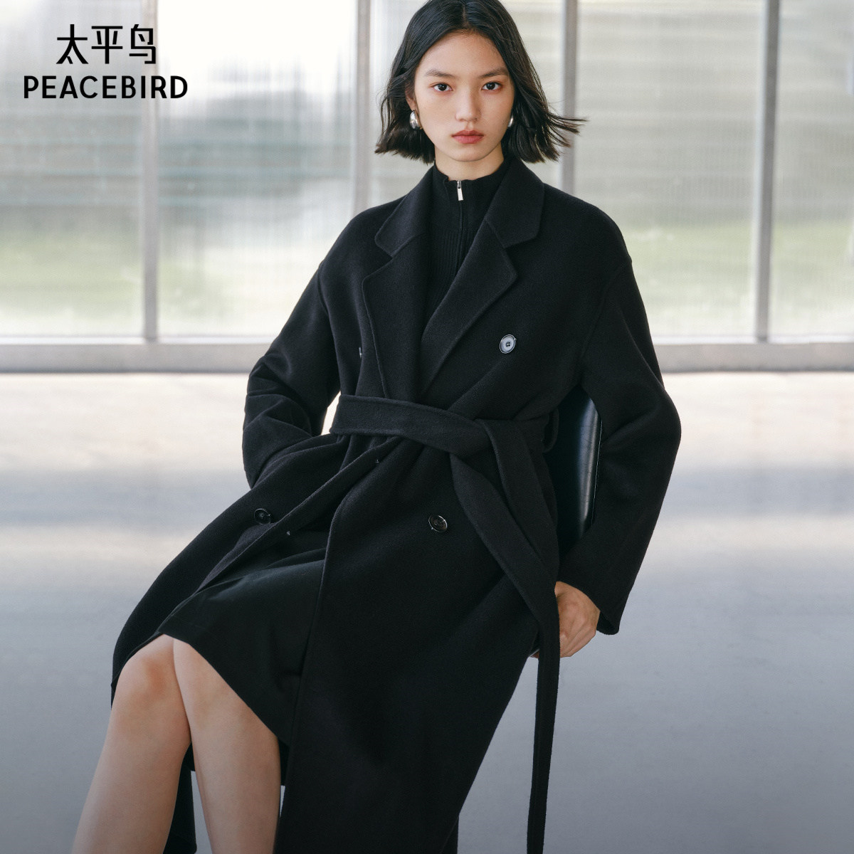 太平鸟甄绒系列经典传承大衣4.0山羊绒大衣女25年新款廓形双面呢