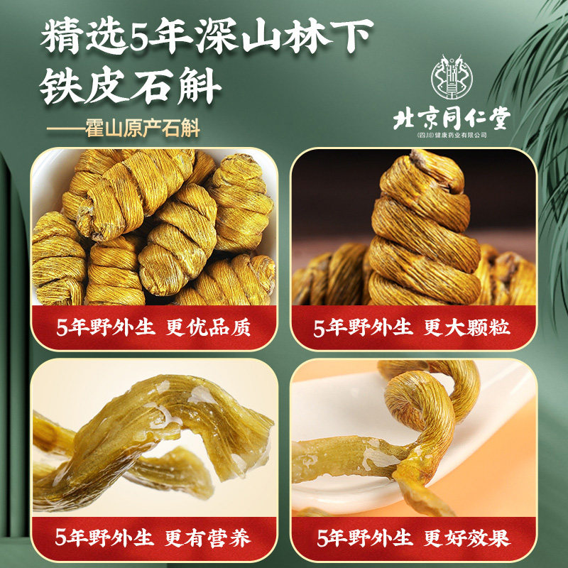 北京同仁堂铁皮石斛正品官方旗舰店正宗霍山铁皮枫斗中草药材米斛