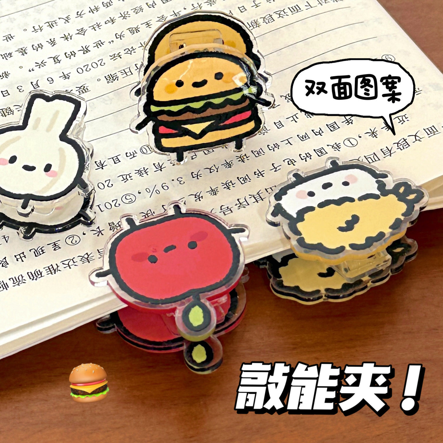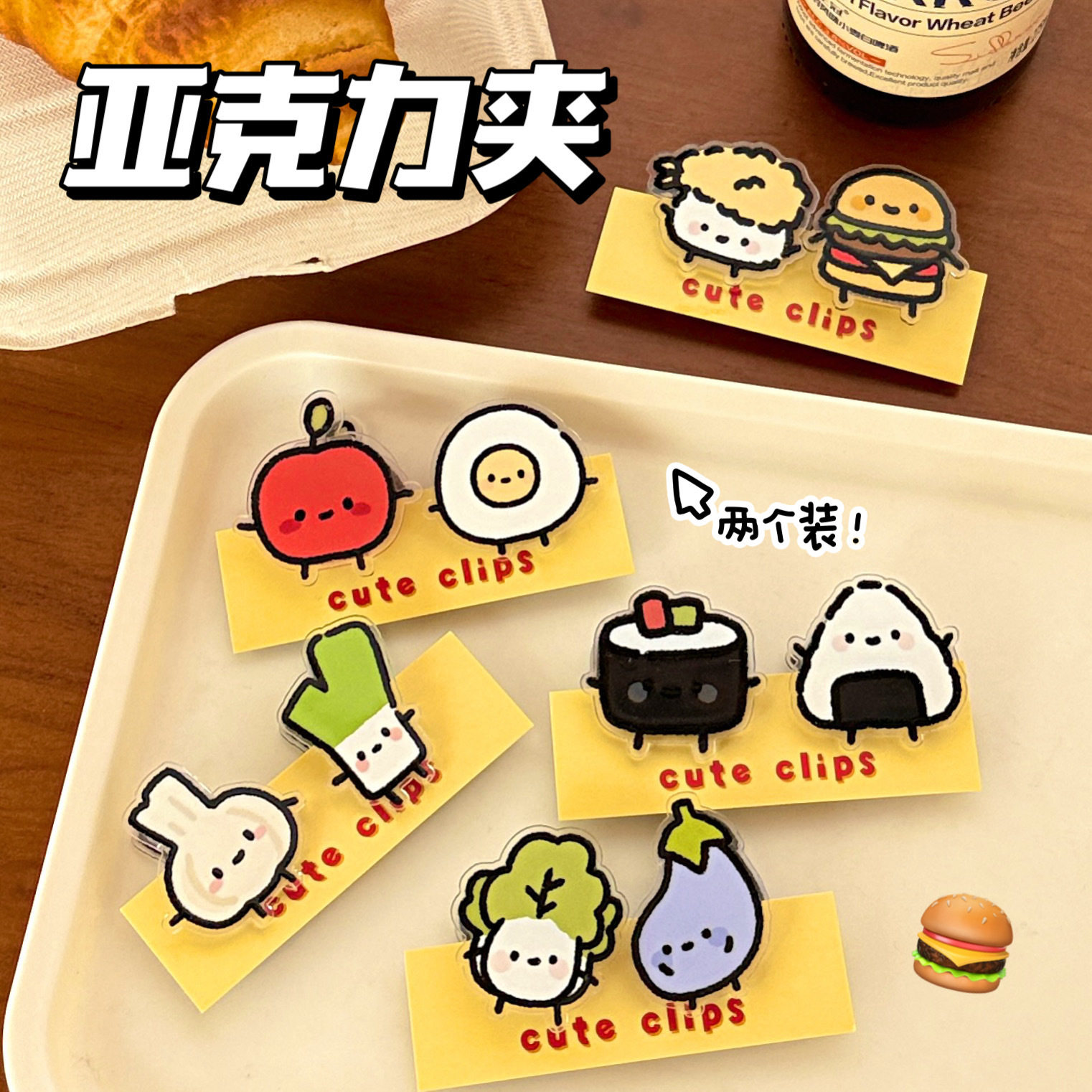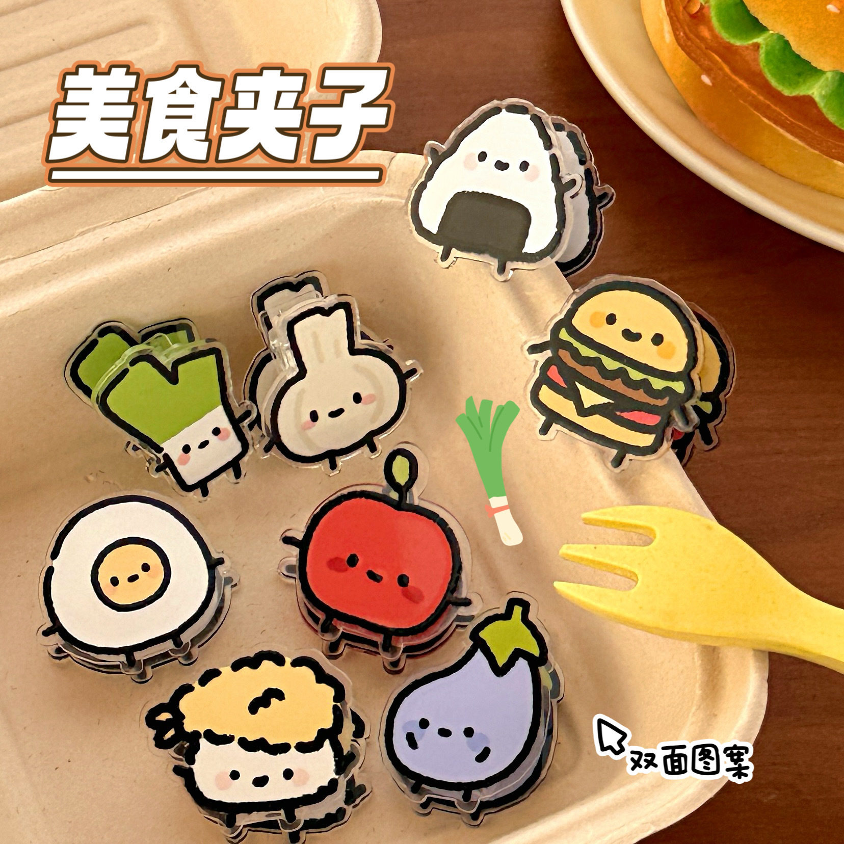 创意美食蔬菜便签夹卡通ins高颜值双面亚克力pp夹收纳试卷夹批发