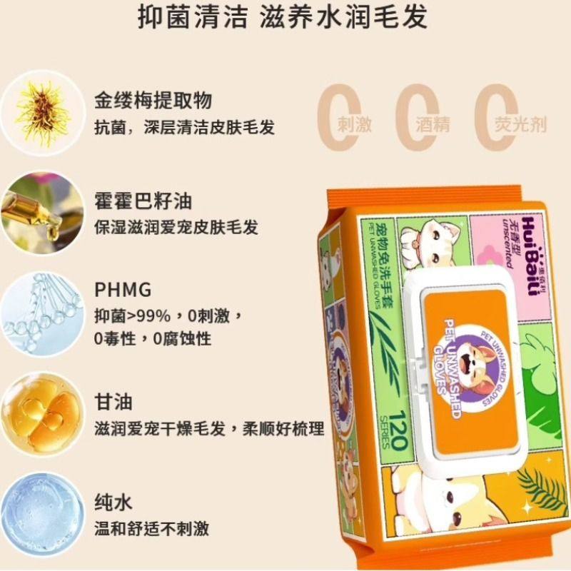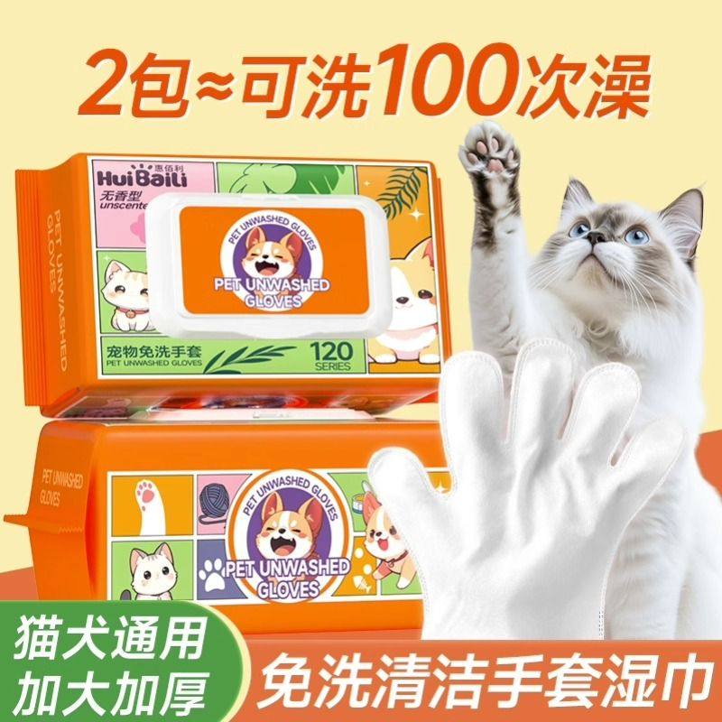 惠佰利宠物免洗手套狗狗猫咪杀菌除臭湿纸巾干洗清洁手套免洗澡