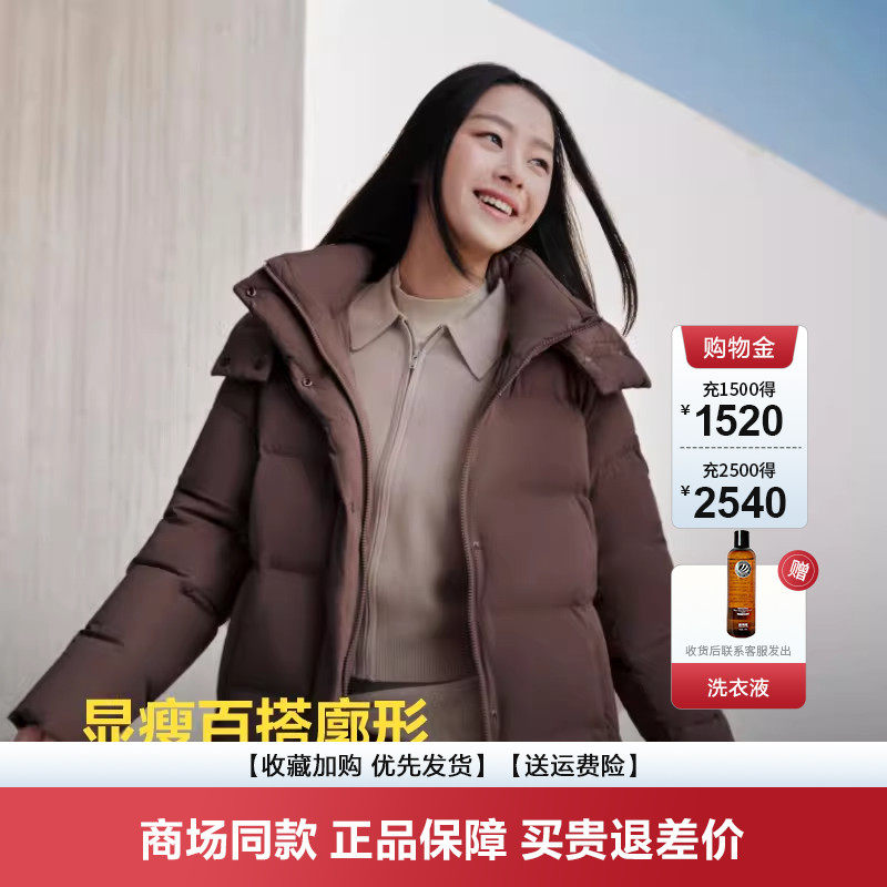 【鞠婧祎同款】鸭鸭2025年冬新款百搭短款女士纯色立领羽绒服外套