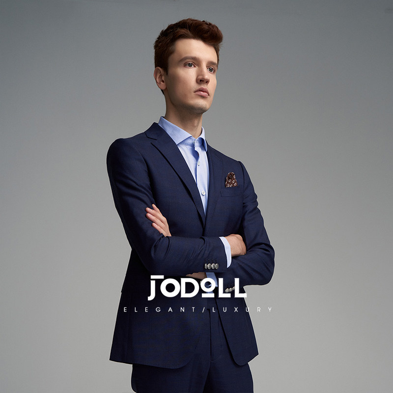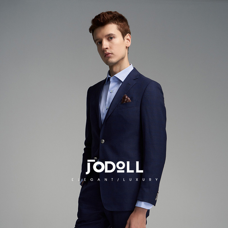 JODOLL乔顿【桑蚕丝羊毛】西服男商务正装修身潮流格纹小西装外套