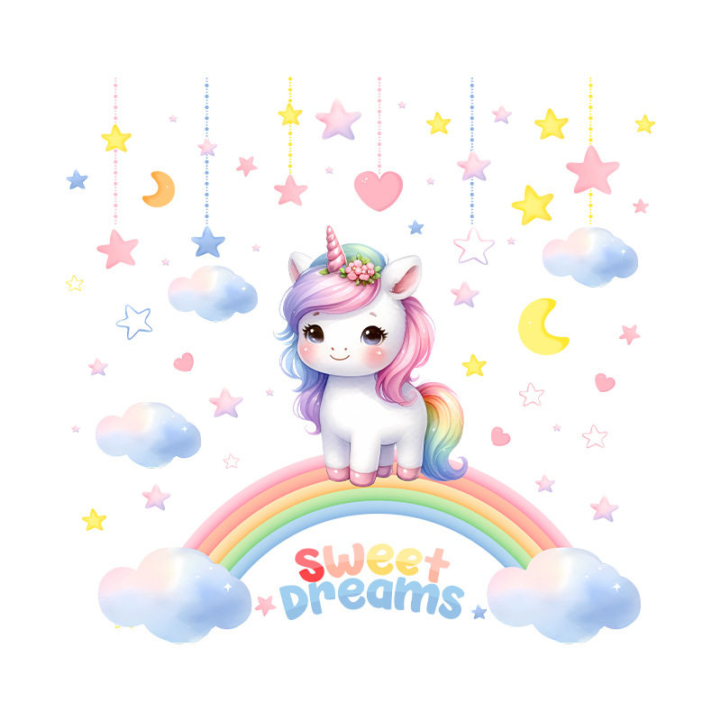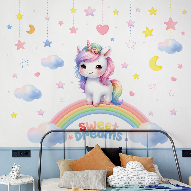 卉之彩CH39151彩虹独角兽墙贴温馨儿童卧室卡通风格主题装饰自粘