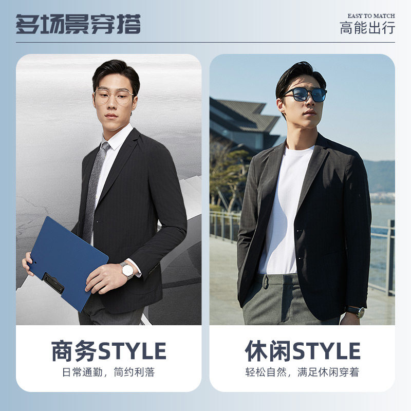 霞湖世家西服外套男春季新款UPF50+原纱防晒防水休闲便西268A