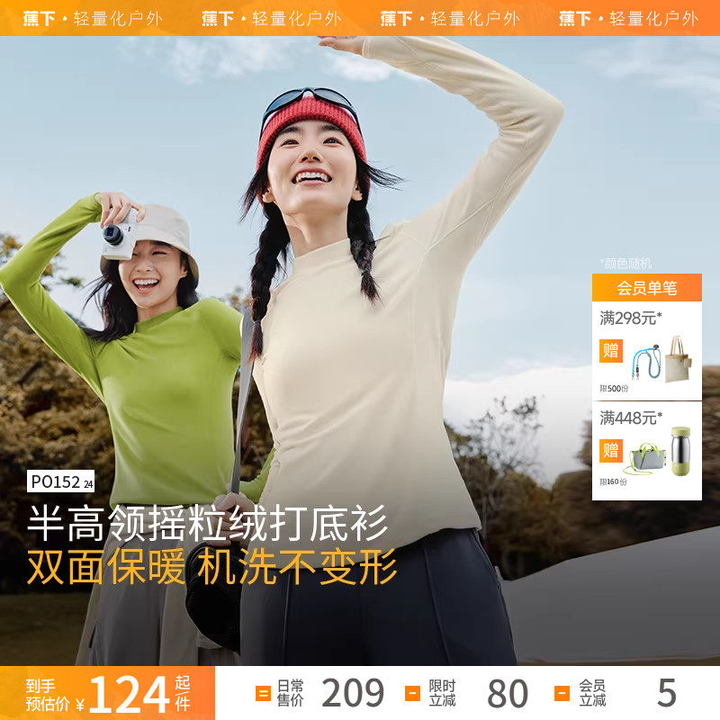 蕉下摇粒绒打底衫女秋季新款半高领保暖加绒亲肤内搭上衣肌底衣
