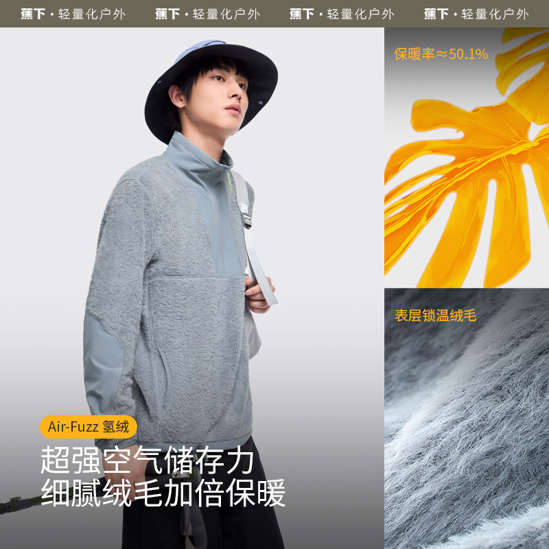 蕉下半拉链摇粒绒打底衫女士秋冬修身新款保暖户外上衣长袖T恤