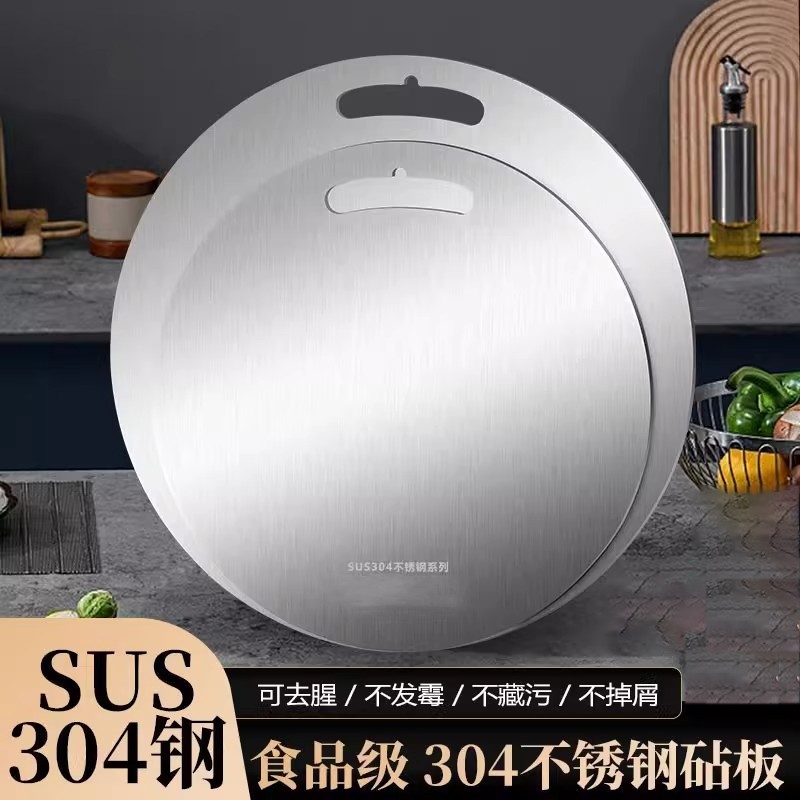 食品级304不锈钢砧板圆形菜板厨房家用案板大号抗菌防霉加厚菜板