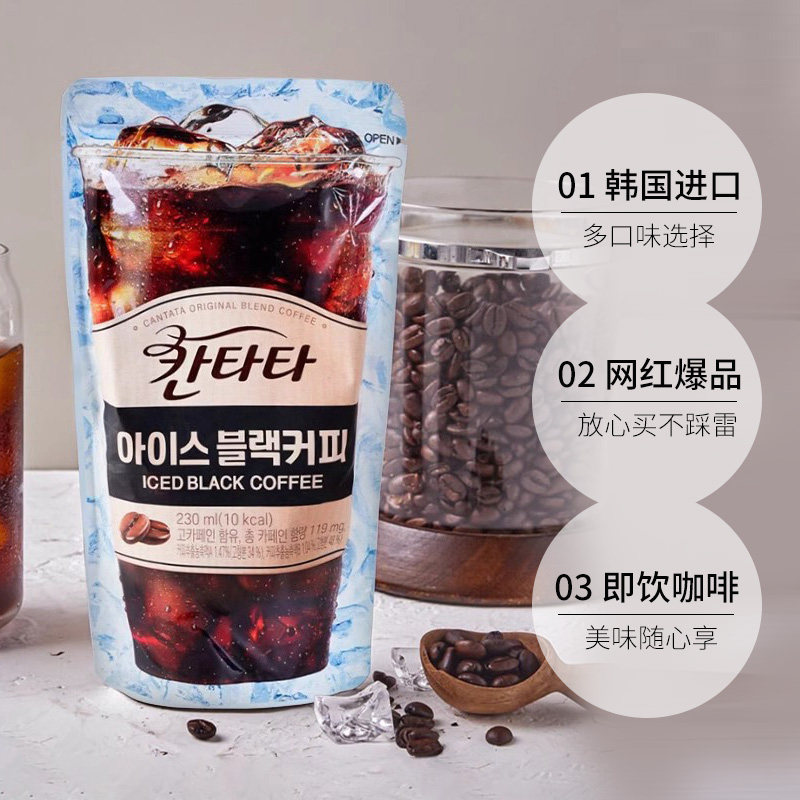 【自营】韩国乐天康塔塔咖啡美式黑咖啡即饮冷萃榛子香草焦糖饮料