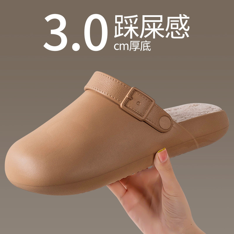 2026新款翻半包跟棉拖加绒保暖情侣外穿毛毛绒厚底防滑居家棉拖鞋