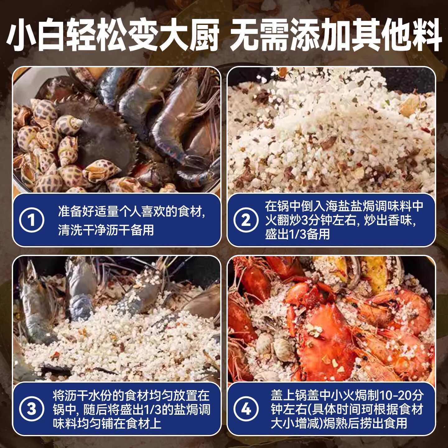 盐焗粗盐海鲜调料包大粒盐大虾蟹家专用盐巴大料蘸料食用香叶香料