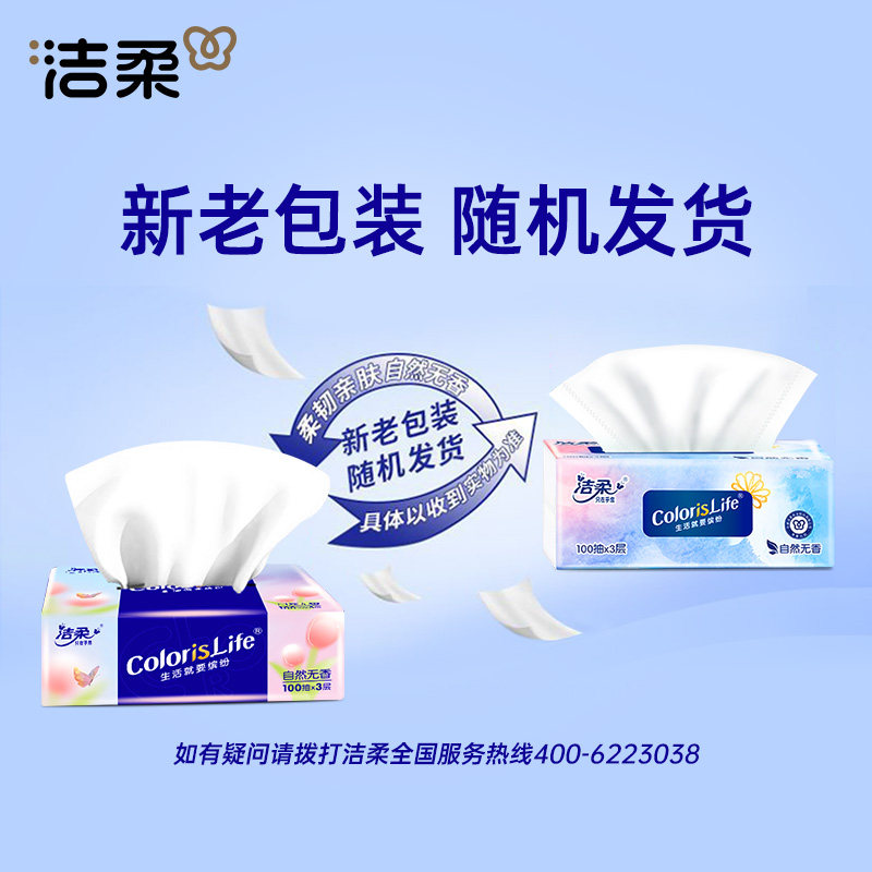 洁柔缤纷软抽抽纸3层100抽整箱实惠卫生纸无香纸巾家用面巾纸香味