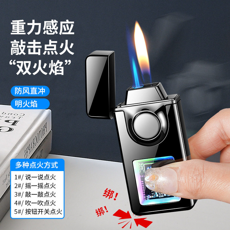 气电双用打火机金属智能明火直冲双火创意个性送友礼感应仪式感