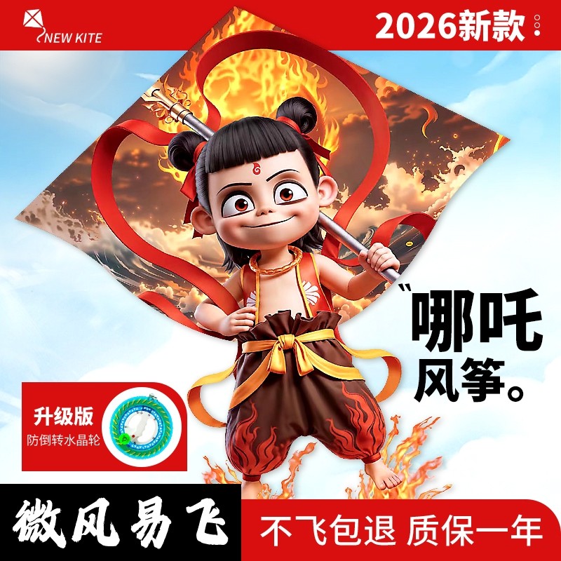 哪咤魔童闹海风筝2025年新款潍坊儿童微风易飞大人专用网红卡通