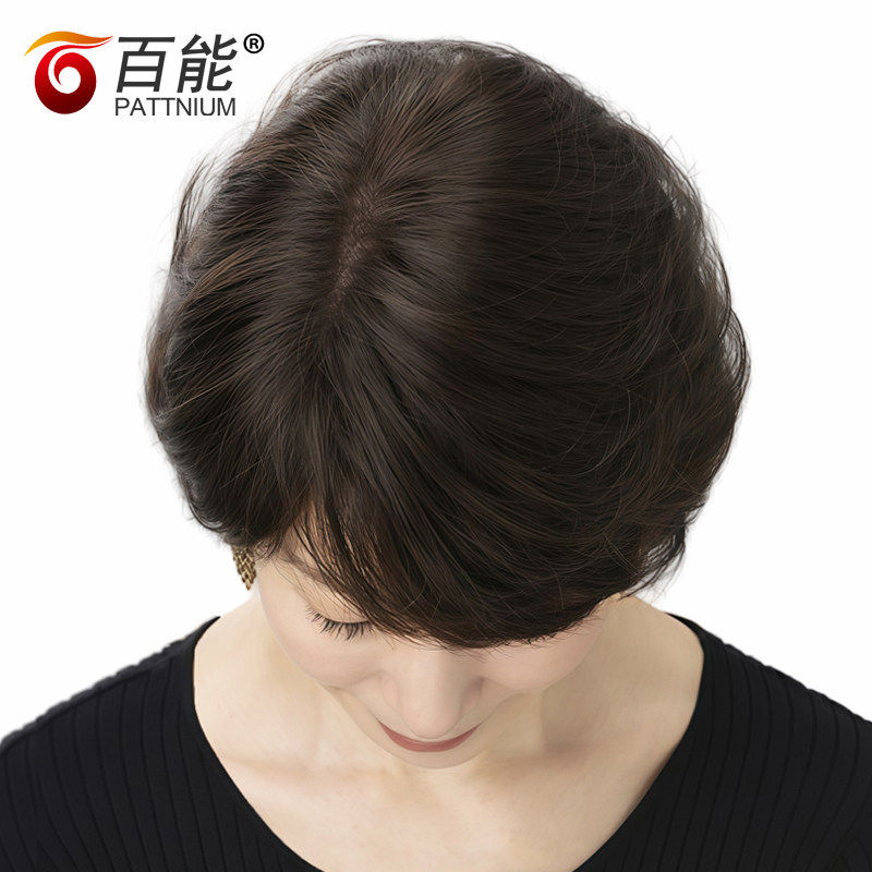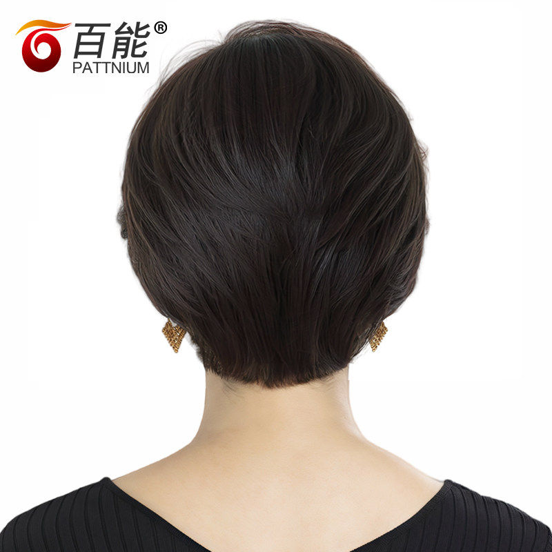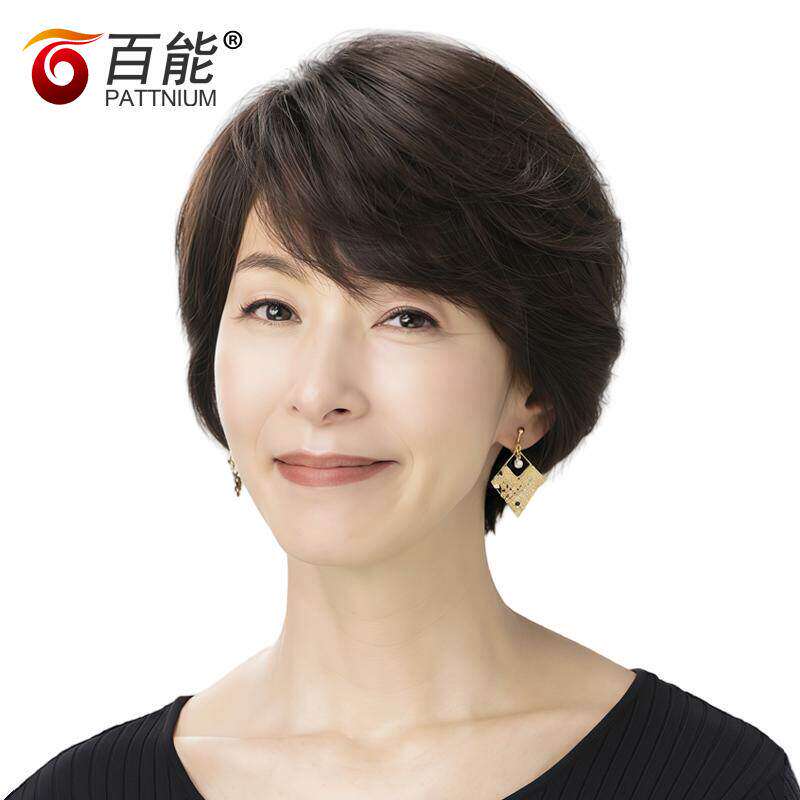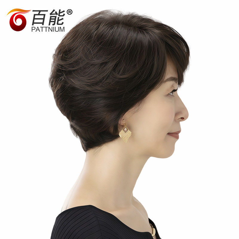 真人发丝假发套短发女直发 全手织中老年假发 女士逼真妈妈头套