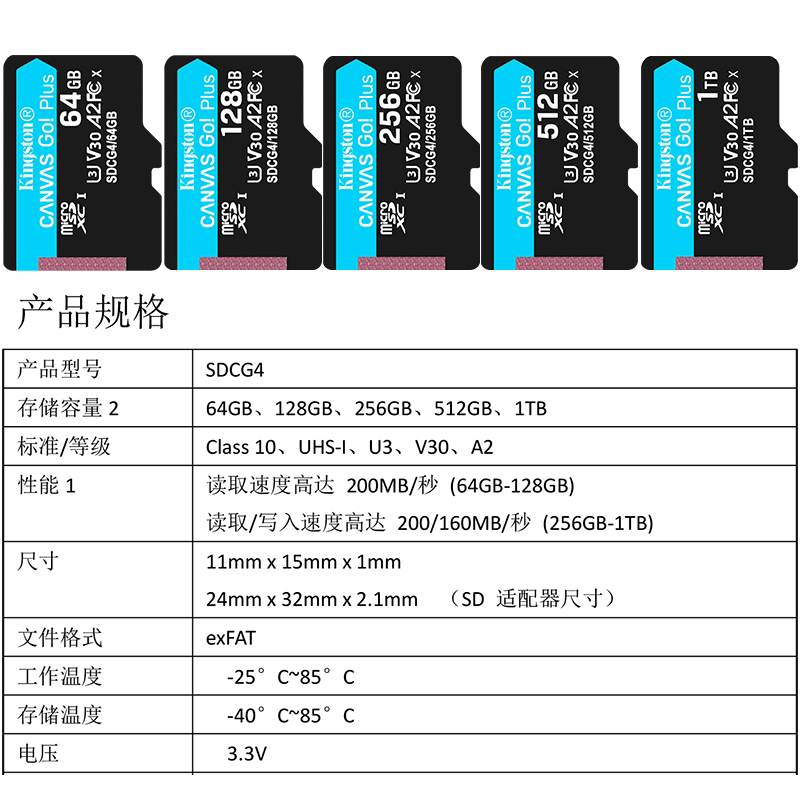 正品金士顿高速tf内存卡128g无人机大疆pocket3监控记录仪256G