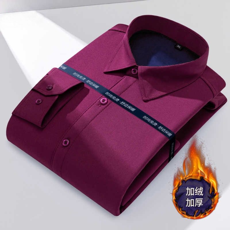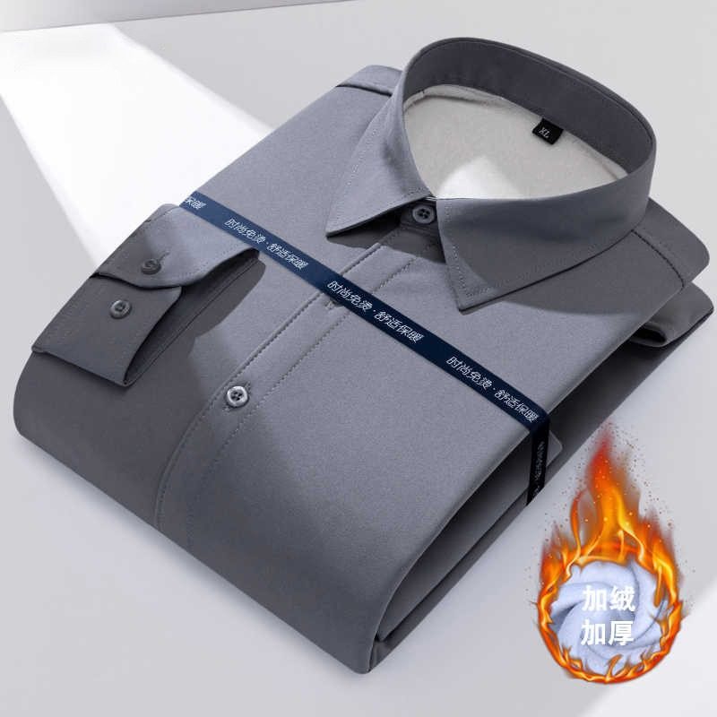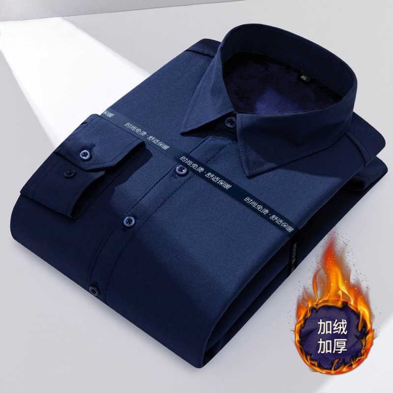 2025新款百搭加绒加厚白色衬衫男长袖保暖商务正装高弹力纯色衬衣