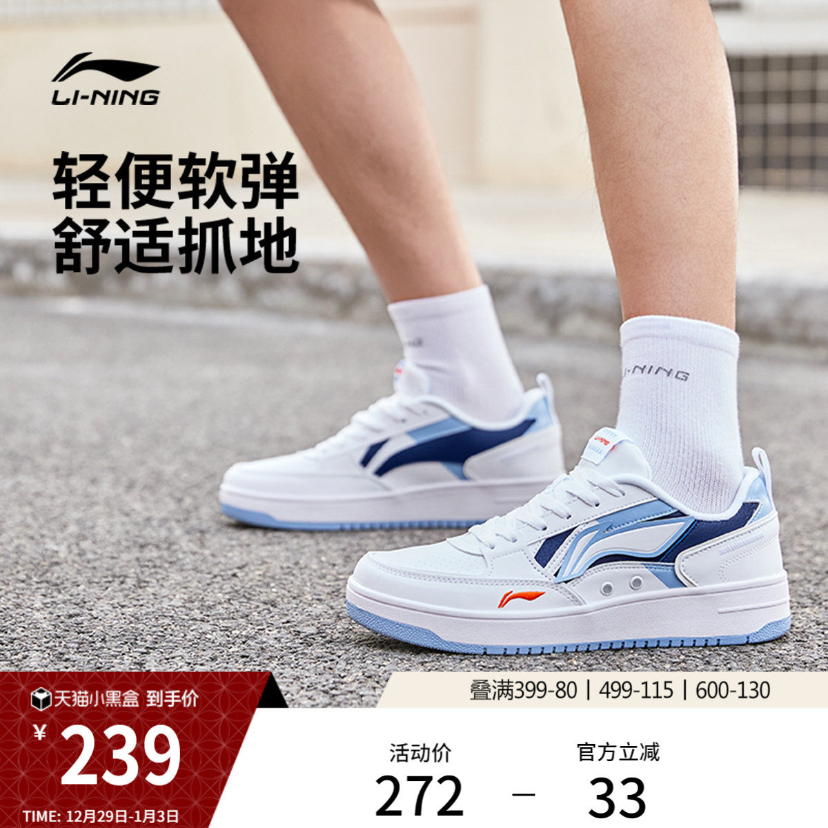 李宁小白鞋 | 板鞋秋冬新款男鞋低帮经典软底轻便学生运动鞋男款