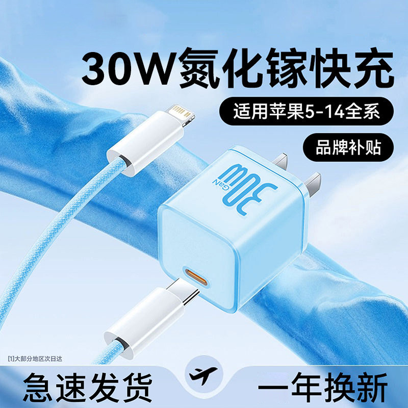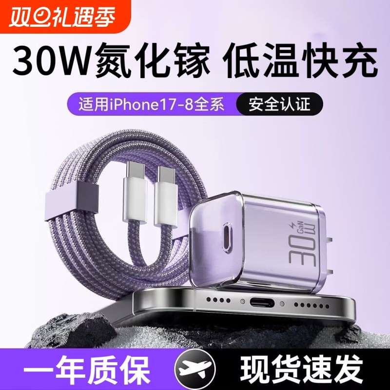 【iPhone17首选】氮化镓小冰块新款30W适用苹果17充电器线iPhone17ProMax充电头16手机数据线快充Air一套15