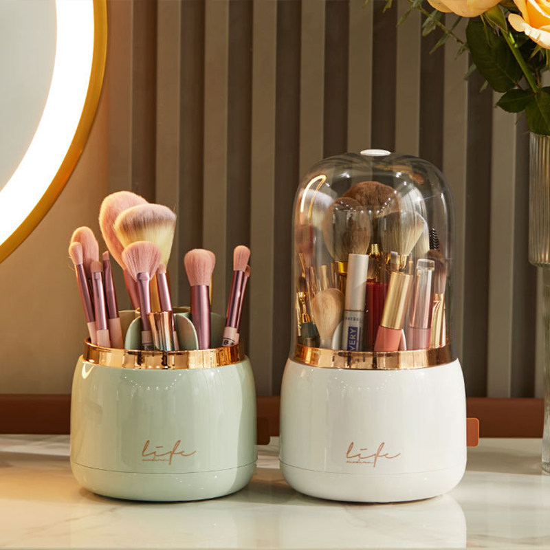 可旋转化妆刷收纳桶多功能口红眉笔化妆品收纳盒轻奢风分格笔刷桶
