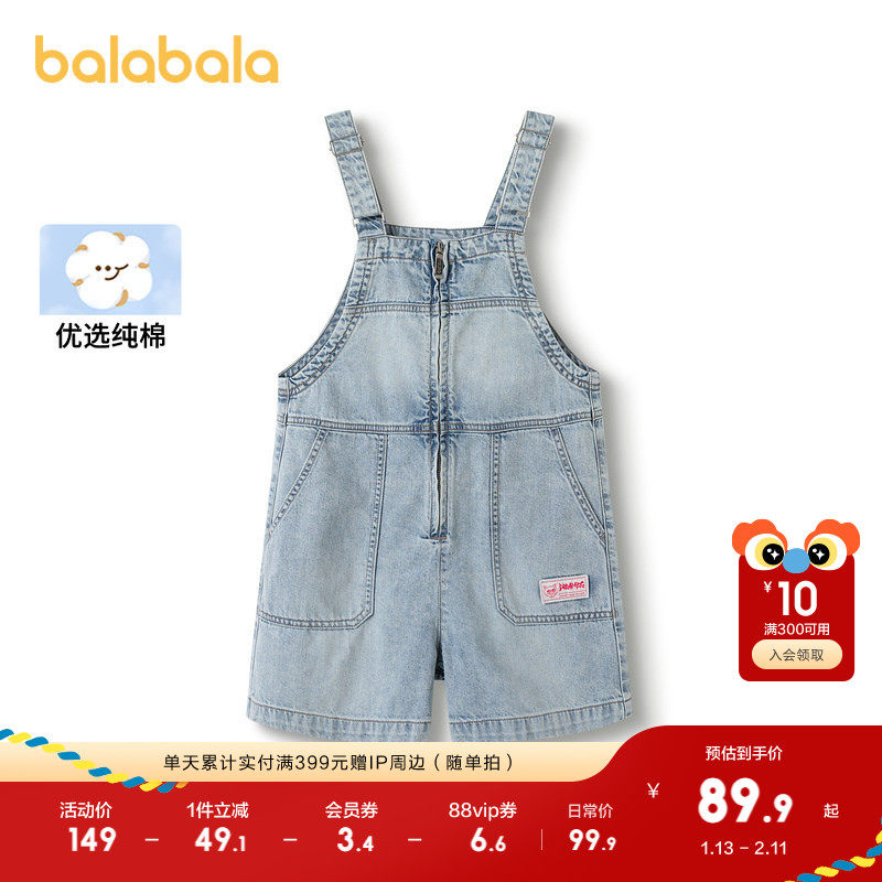 巴拉巴拉童装儿童短裤女童夏装全棉牛仔休闲中大童裤子背带裤时尚