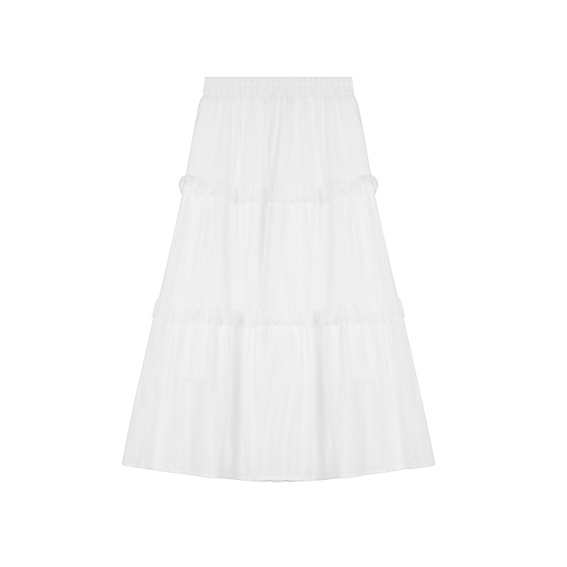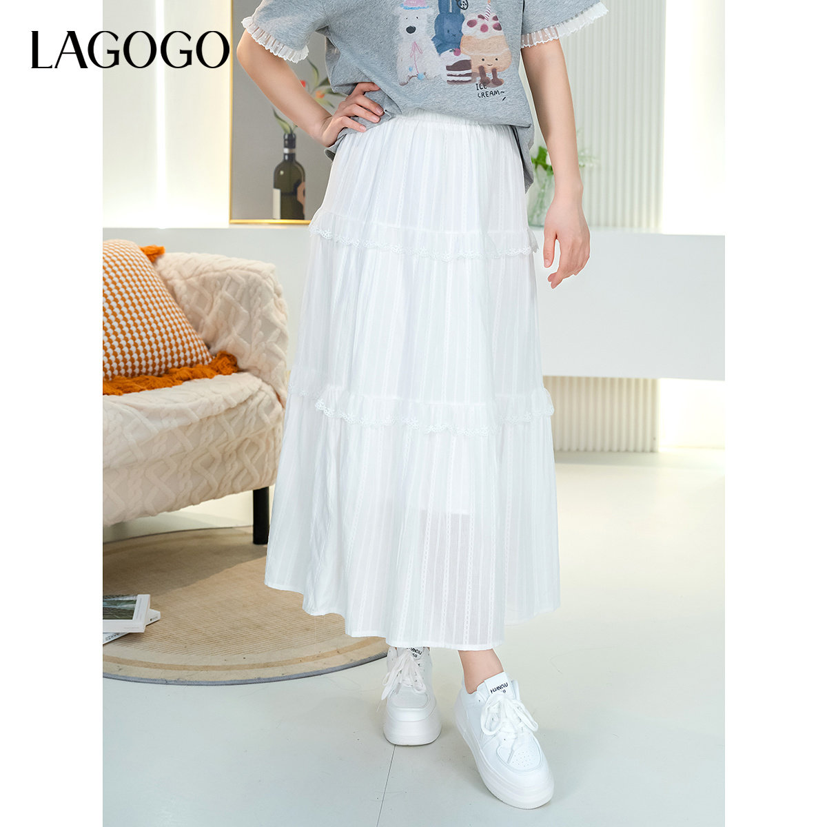 LAGOGO高腰舒适百搭仙气小白裙女拉谷谷秋冬新款宽松半身裙