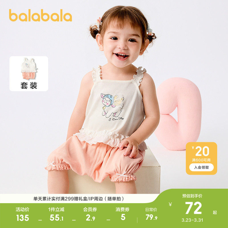 巴拉巴拉女童夏装2026休闲婴儿短袖套装宝宝背心两件套甜美时尚萌