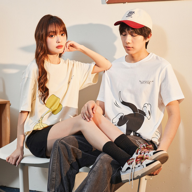 唐狮夏情侣短袖T恤圆领乐一通联名印花短袖体恤衫情侣装短袖T恤