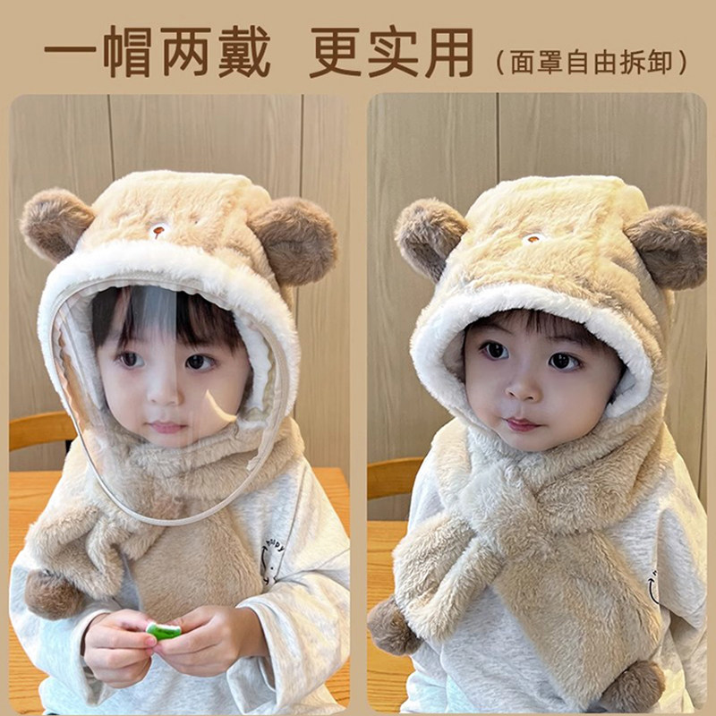 儿童防风面罩帽子秋冬季男女童骑行护耳套头帽宝宝围巾一体帽防寒