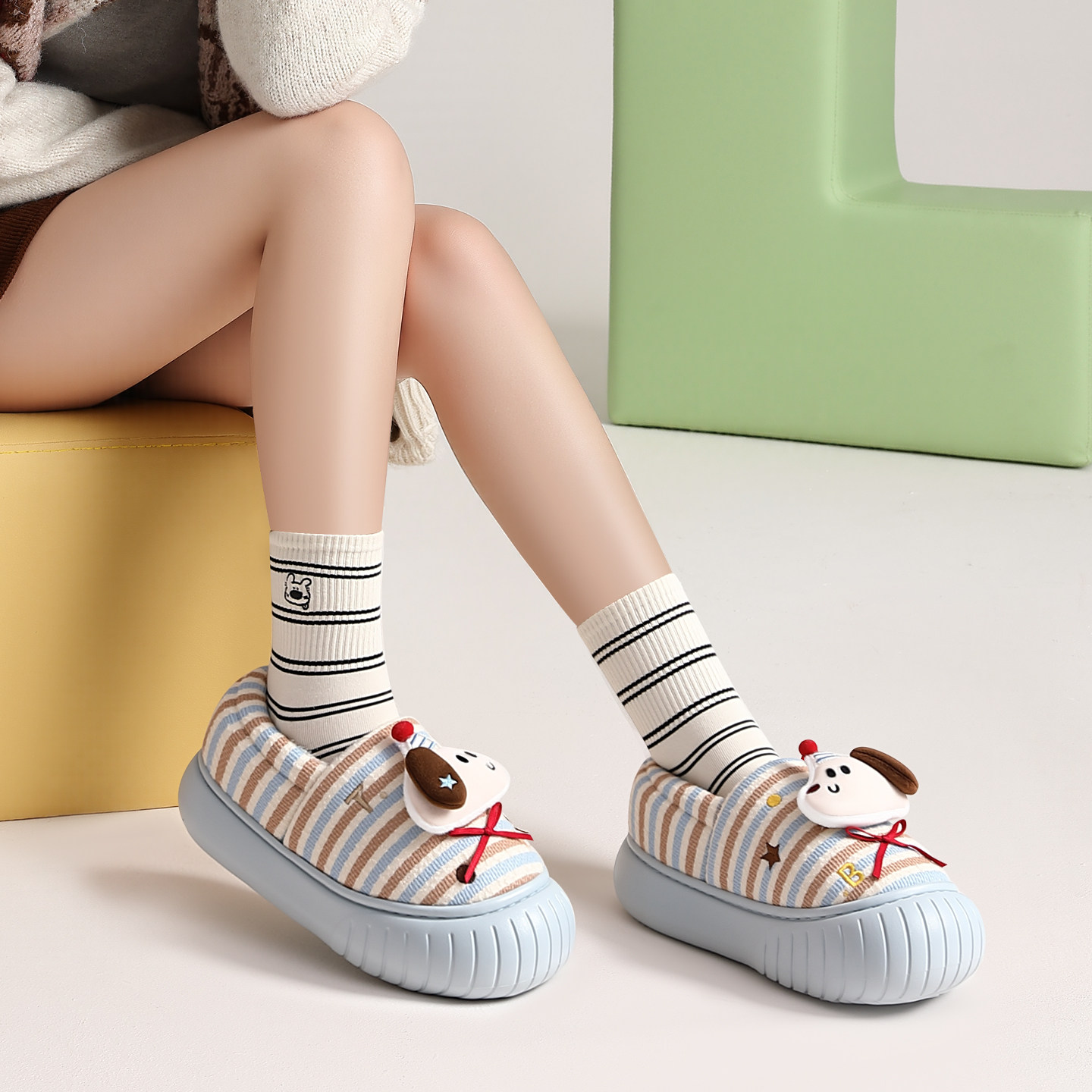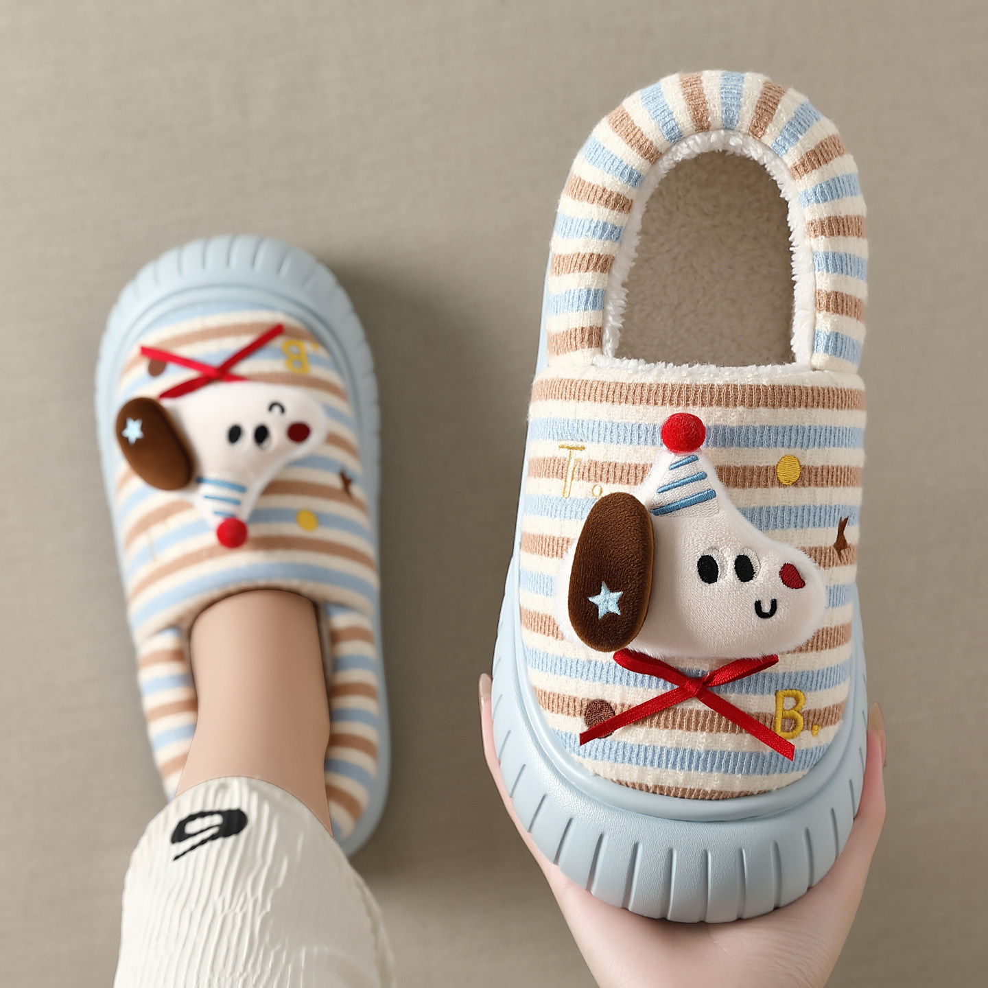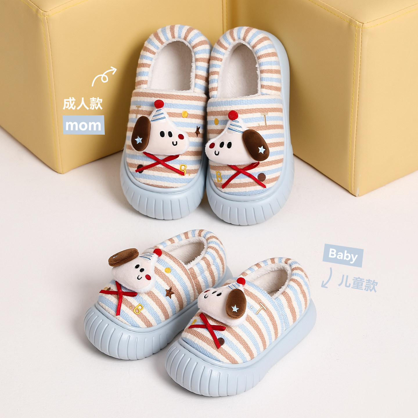 可爱小狗棉拖鞋女冬季2025新款室内家居包跟外穿毛绒保暖亲子棉拖