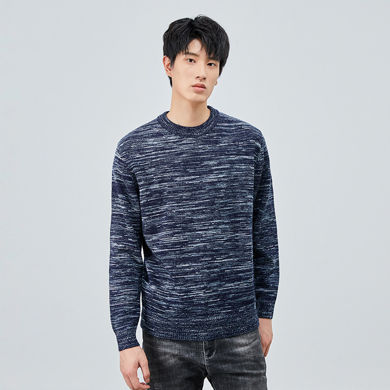 森马毛衫男冬季满版提花针织衫撞色毛衣宽松套头衫百搭提花潮-TK