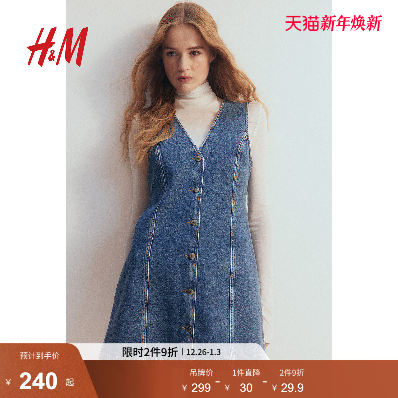 HM女装连衣裙2025秋季新款时尚休闲A字法式掐腰牛仔长裙1272640