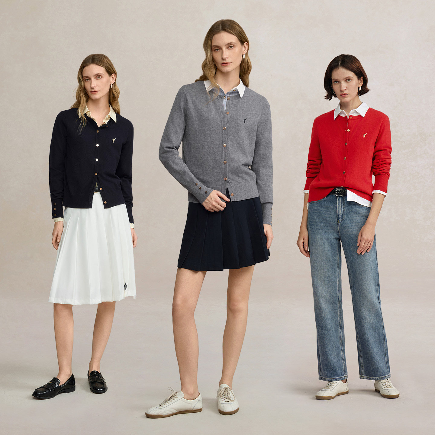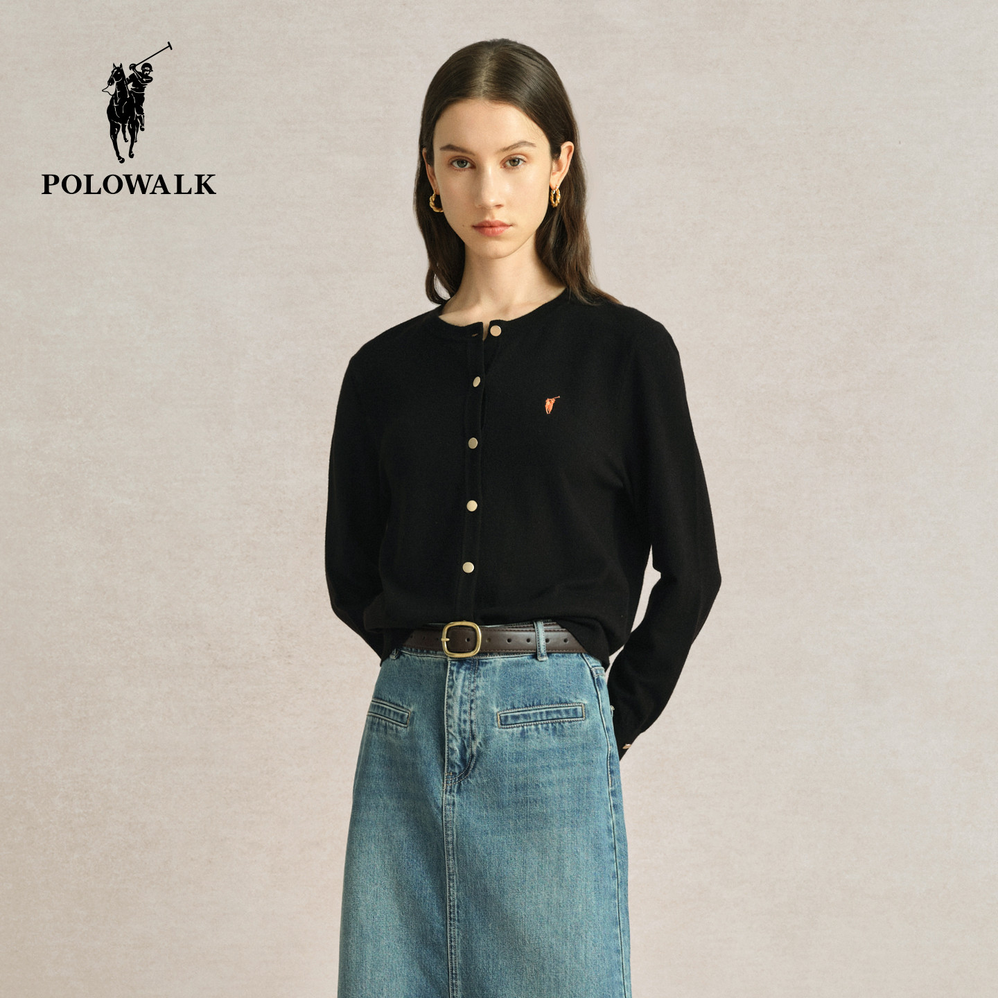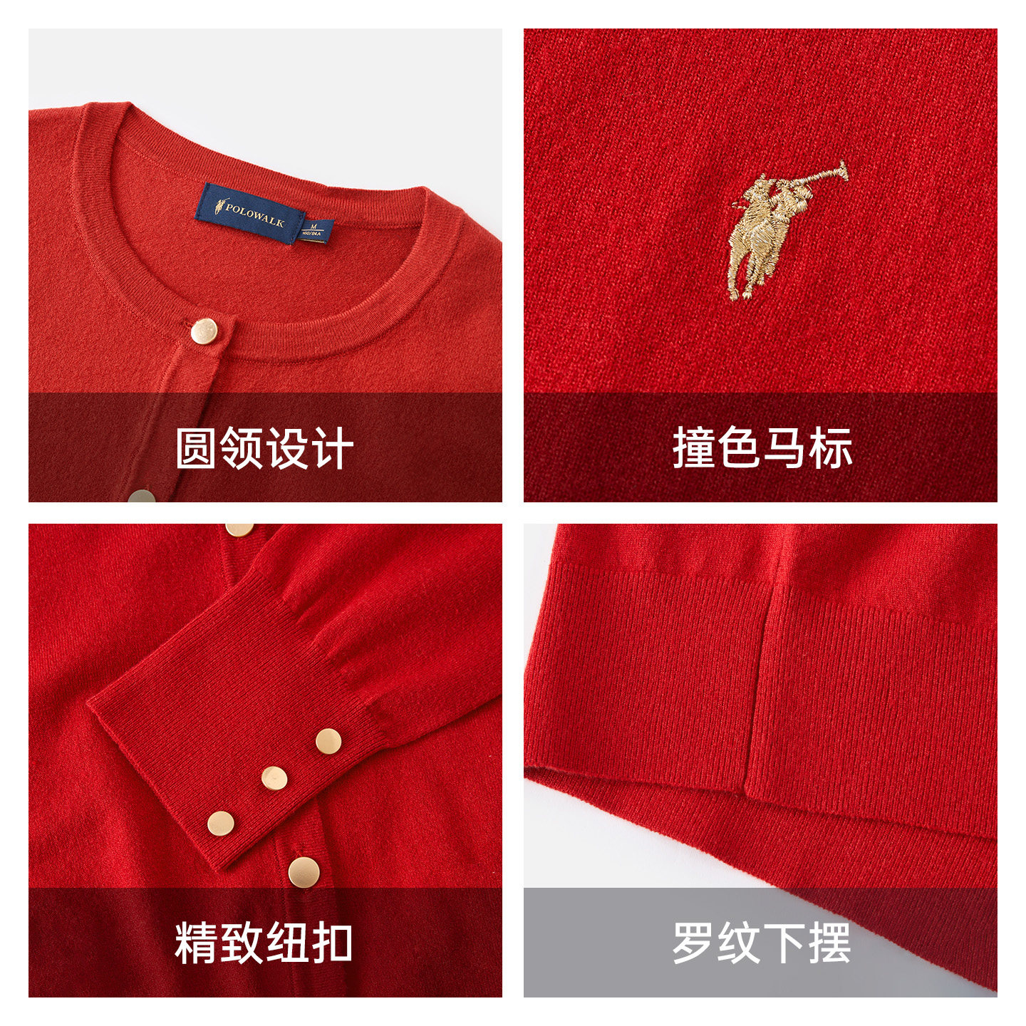 POLOWALK女士针织开衫红色毛衣外搭开衫薄款针织衫新年红内搭上衣