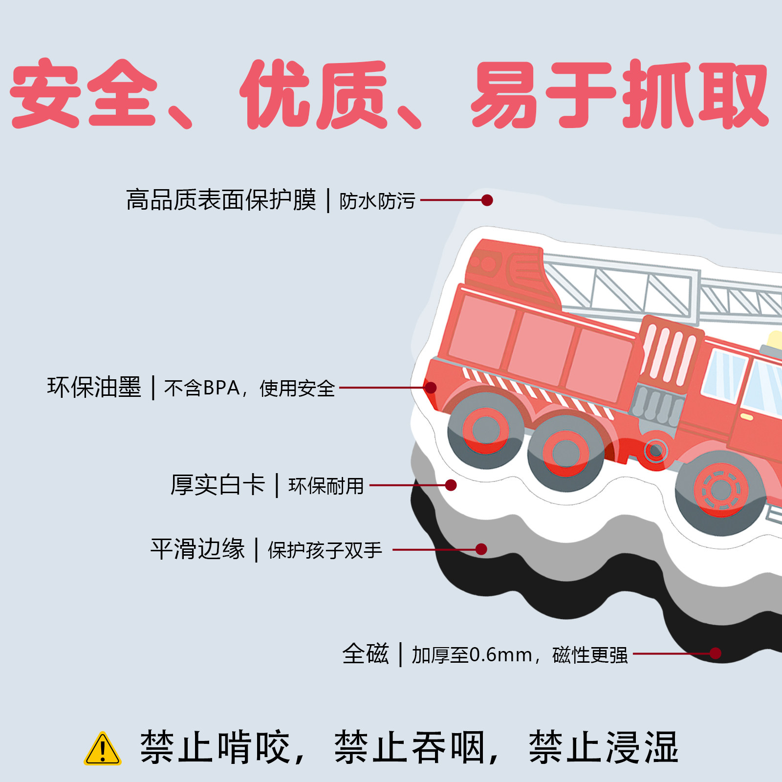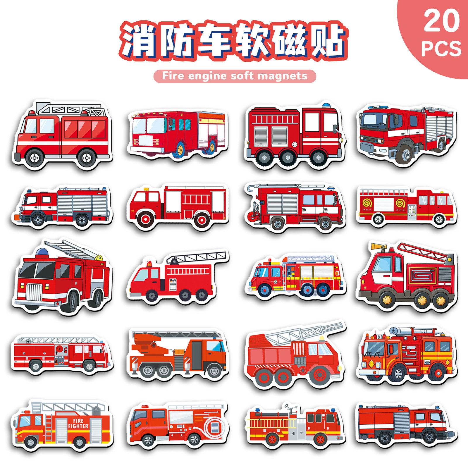 40张消防云梯车软磁冰箱贴儿童卡通消防员交通工具创意diy家居装饰防盗门留言板黑板柜子入户门吸铁石磁力贴