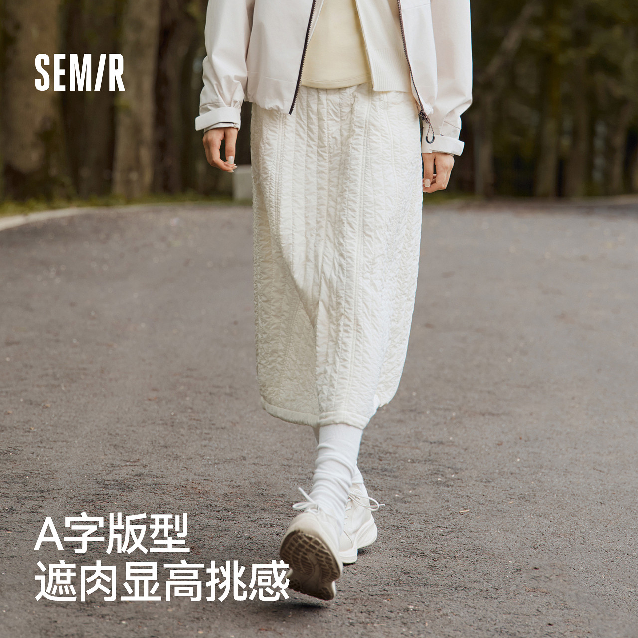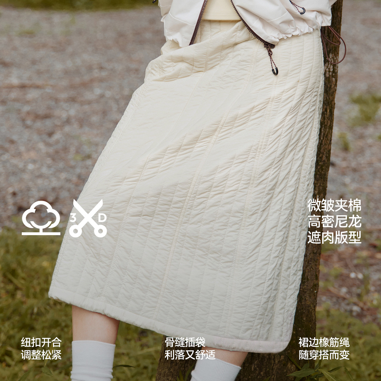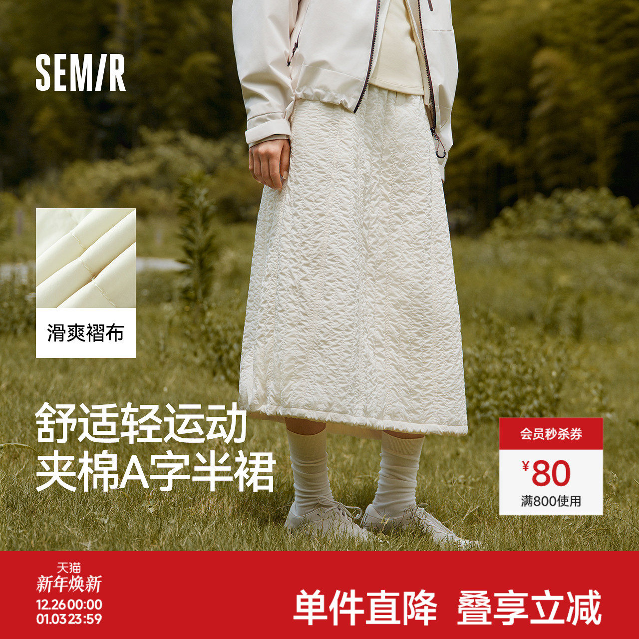 森马半身裙女冬季肌理夹棉松紧腰A字长裙抽绳2025新款温柔气球裙