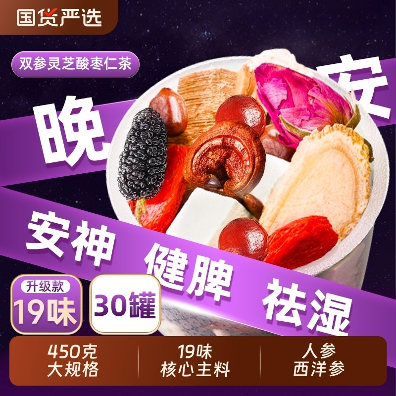 酸枣仁茯苓百合茶睡失助眠神安正品官方旗舰店人参滋补