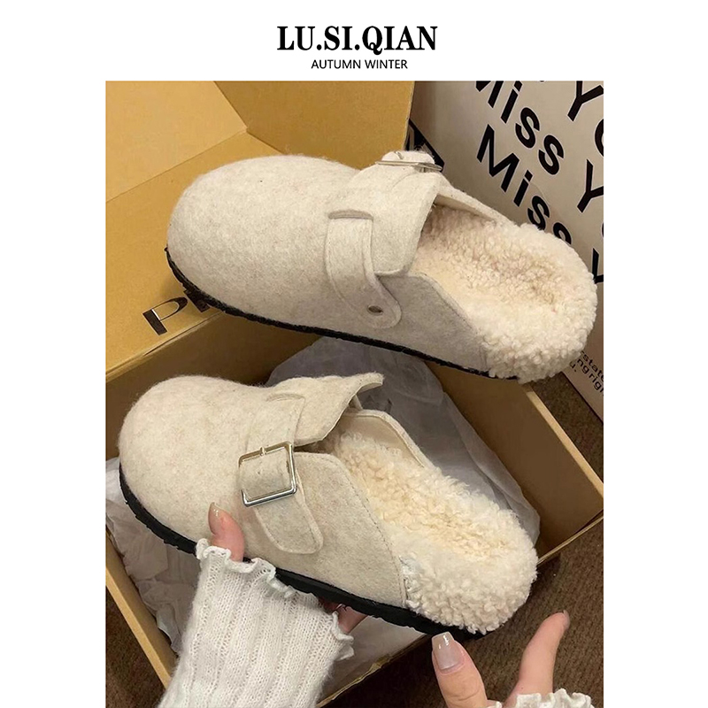 周雨彤同款厚底勃肯鞋女2025新款冬季加绒半拖鞋外穿增高穆勒鞋子