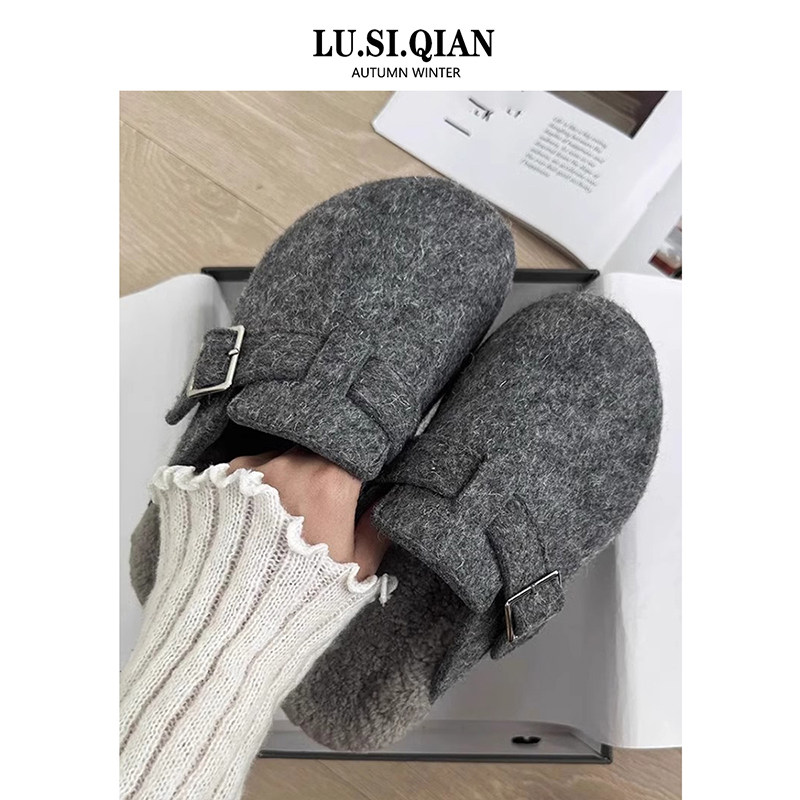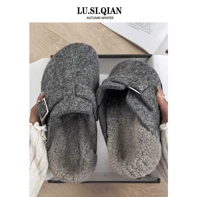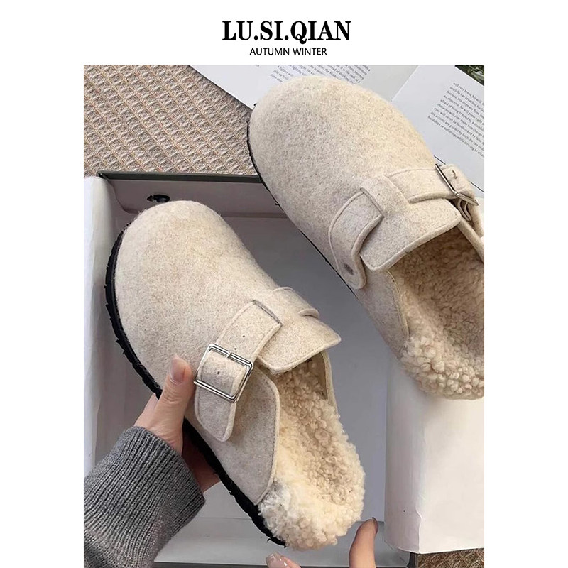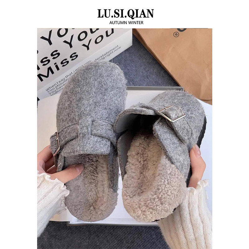小众厚底勃肯鞋毛毛拖鞋女外穿2025秋冬新款加绒包头懒人包头半拖