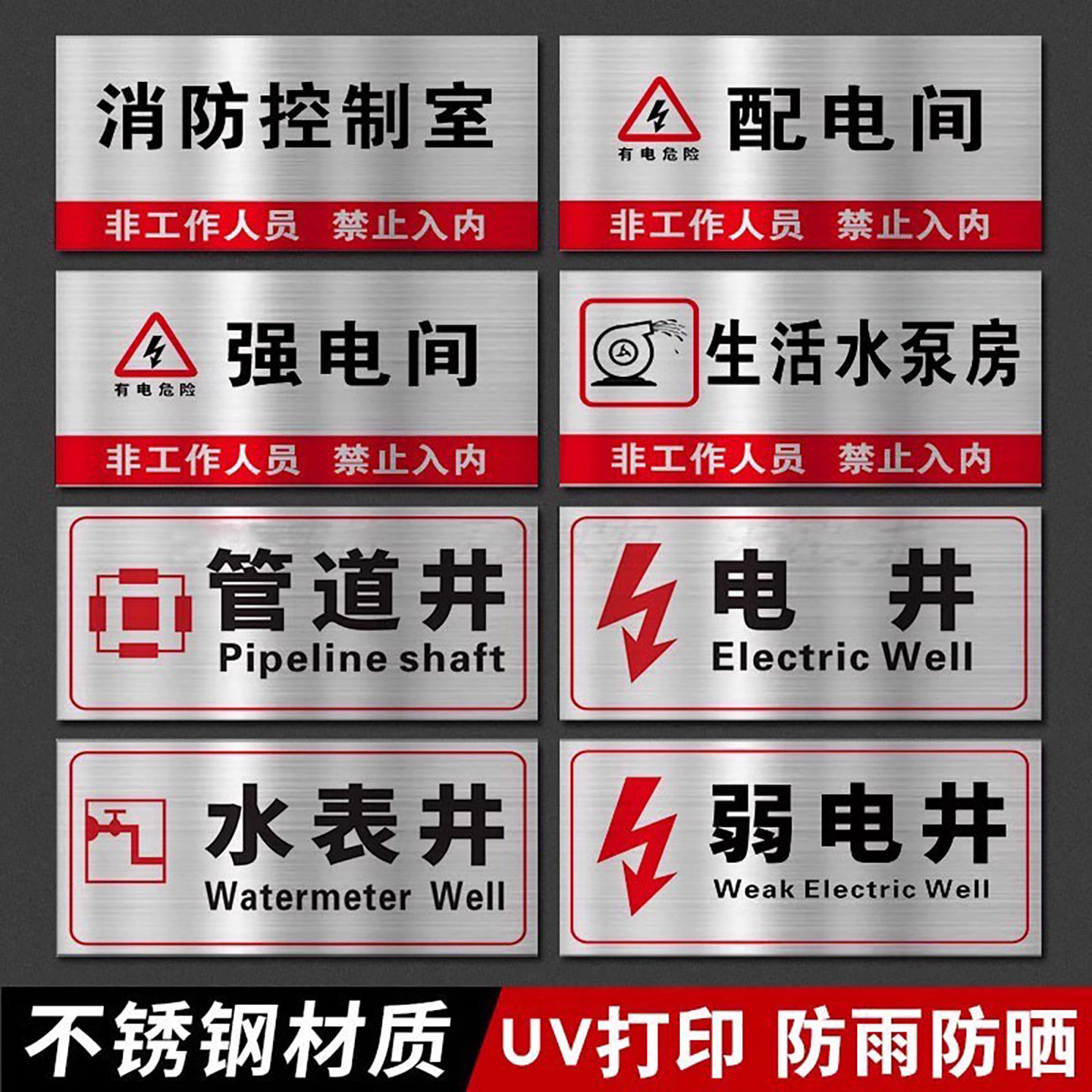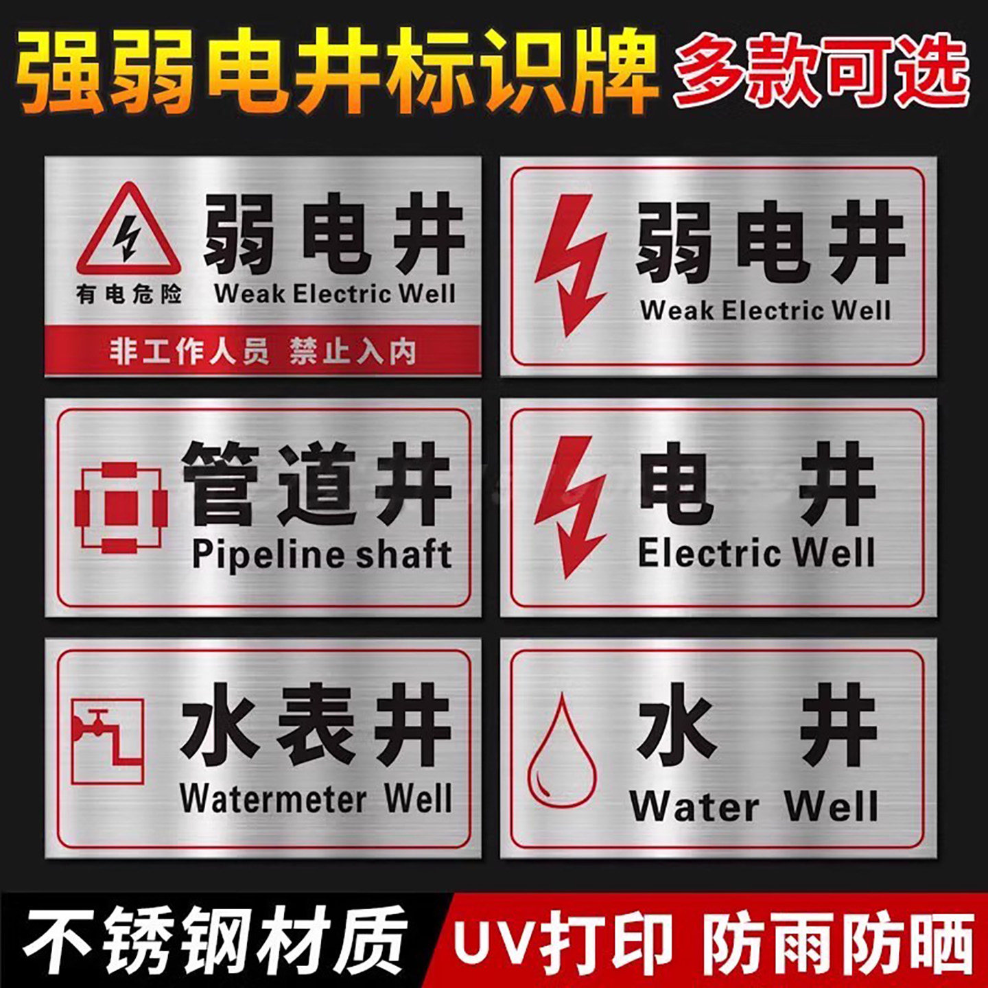 不锈钢强电间弱电间标识牌配电间警示牌水泵房管道井电井水井风机房标示牌强电井弱电井消防标识标牌标志定制