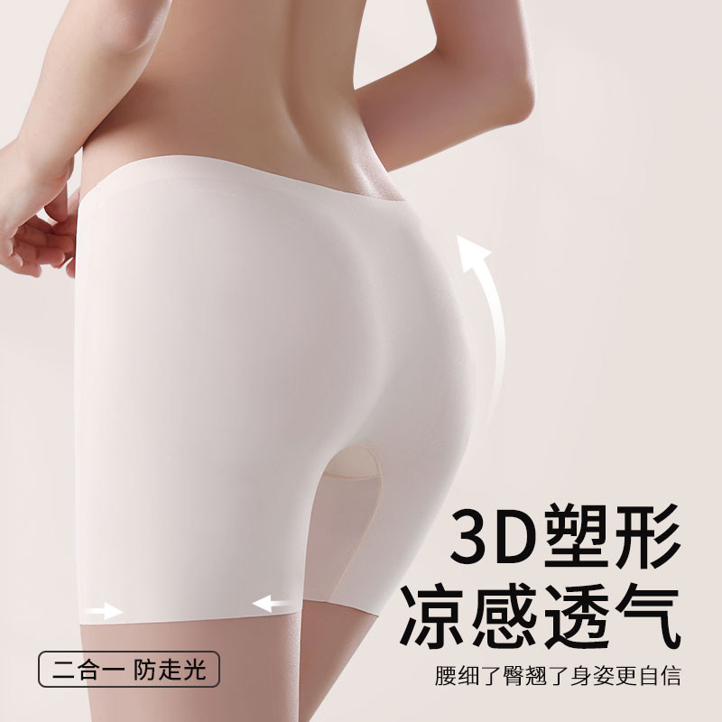 女士冰丝安全打底裤夏季薄款无痕收腹三合一防走光平角短裤隐形