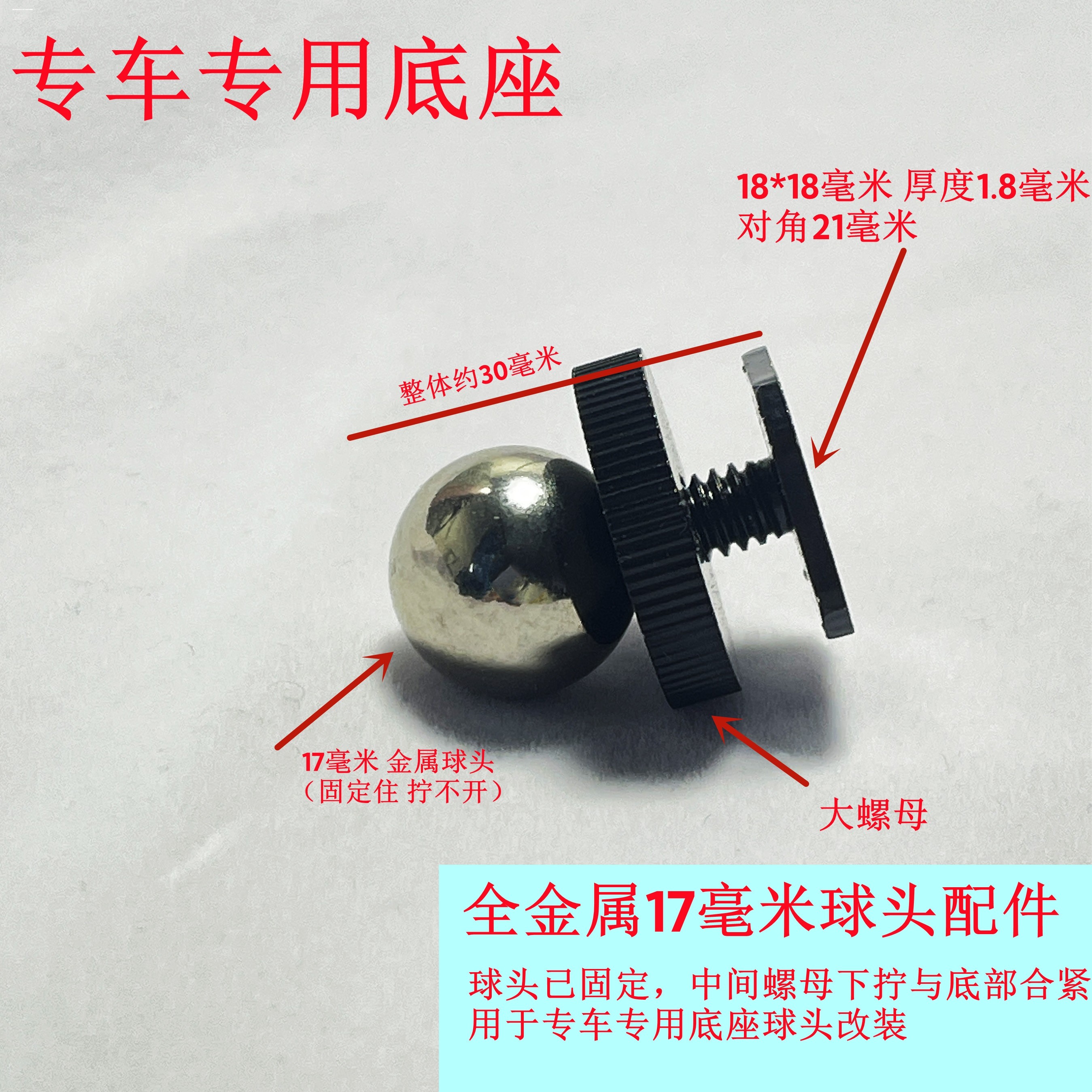 车载支架铝合金粘贴底座17mm万向球头延长手机架通用中控仪表台
