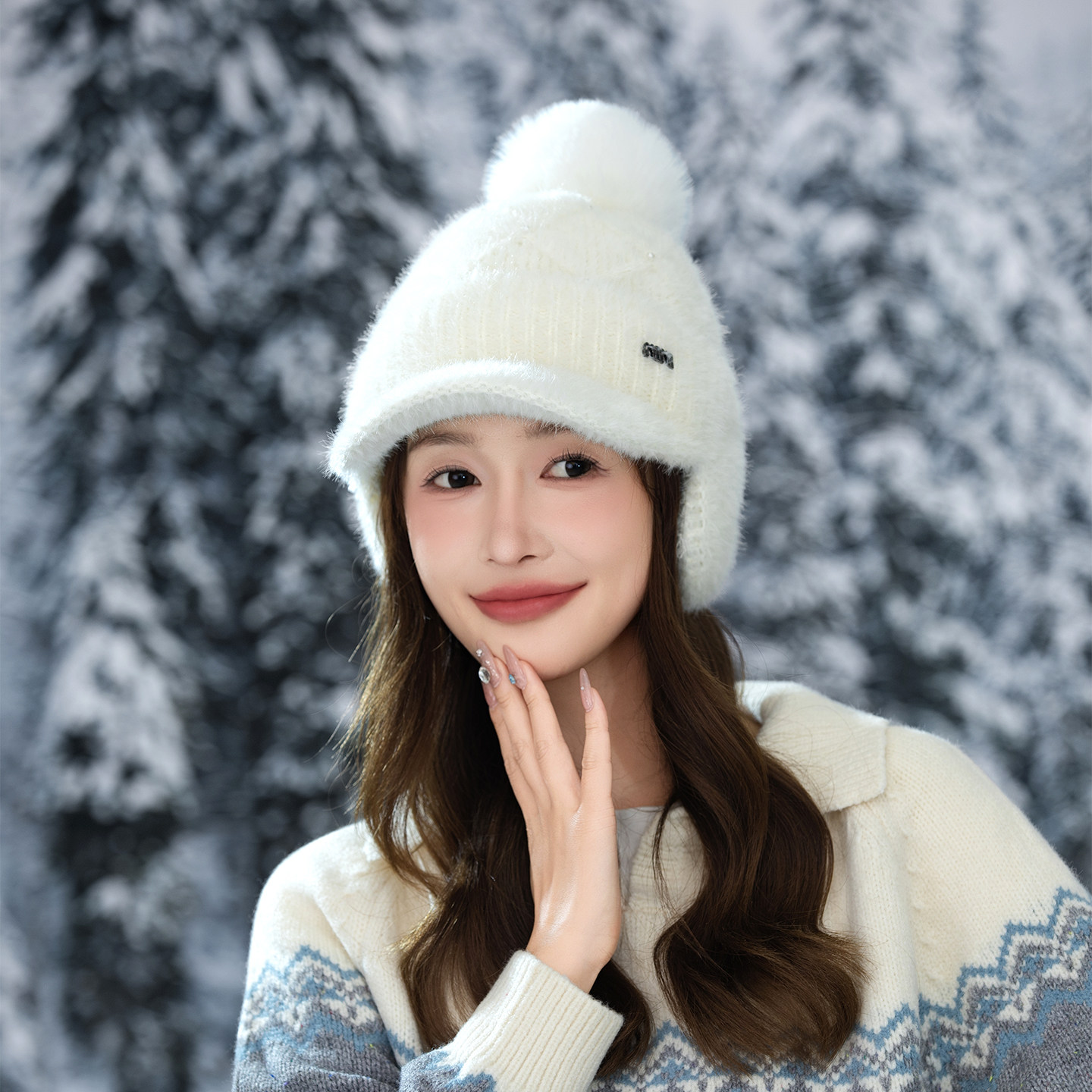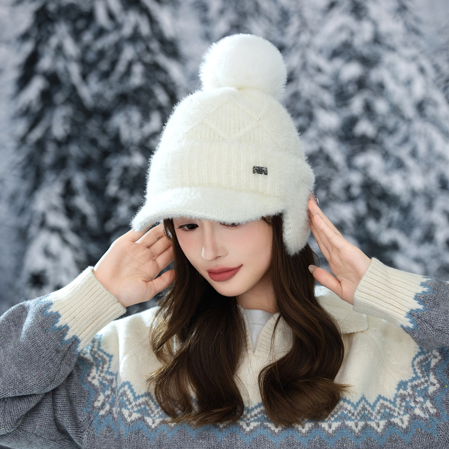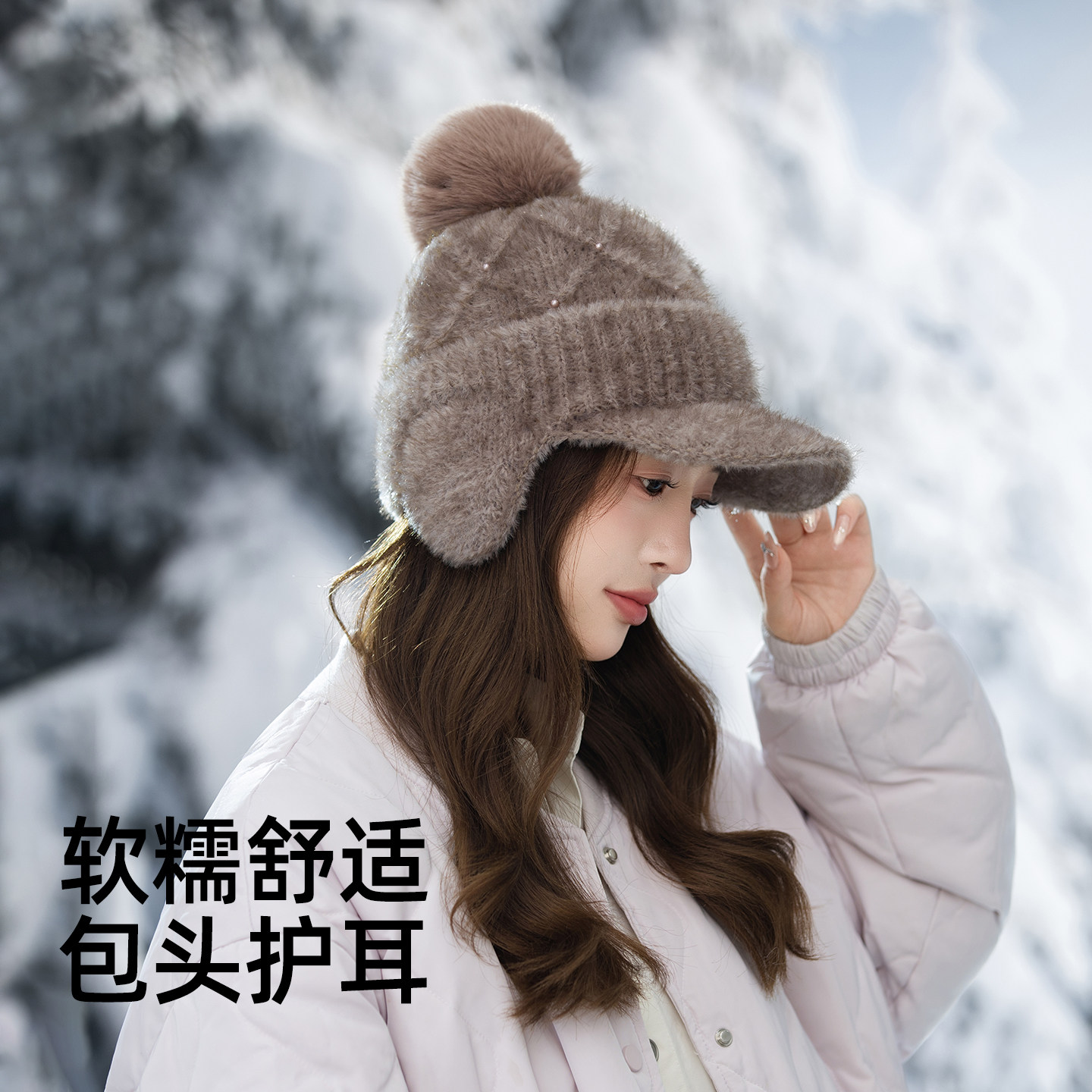 帽子女秋冬季针织帽保暖加厚护耳防寒风包头帽户外旅游骑行东北J
