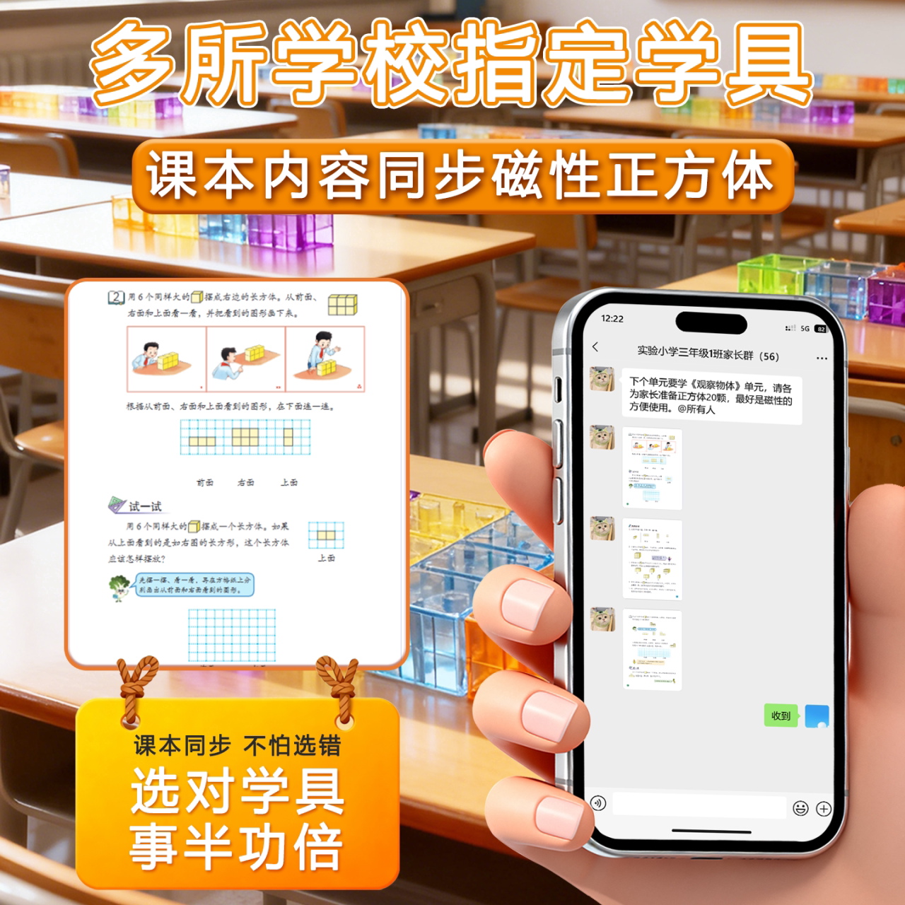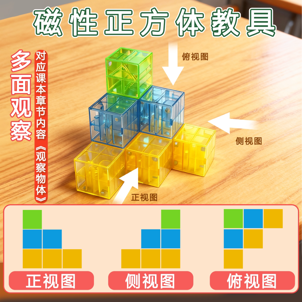 【360°磁性正方体】积木数学教具三视图观察物体小学1-6年级学具