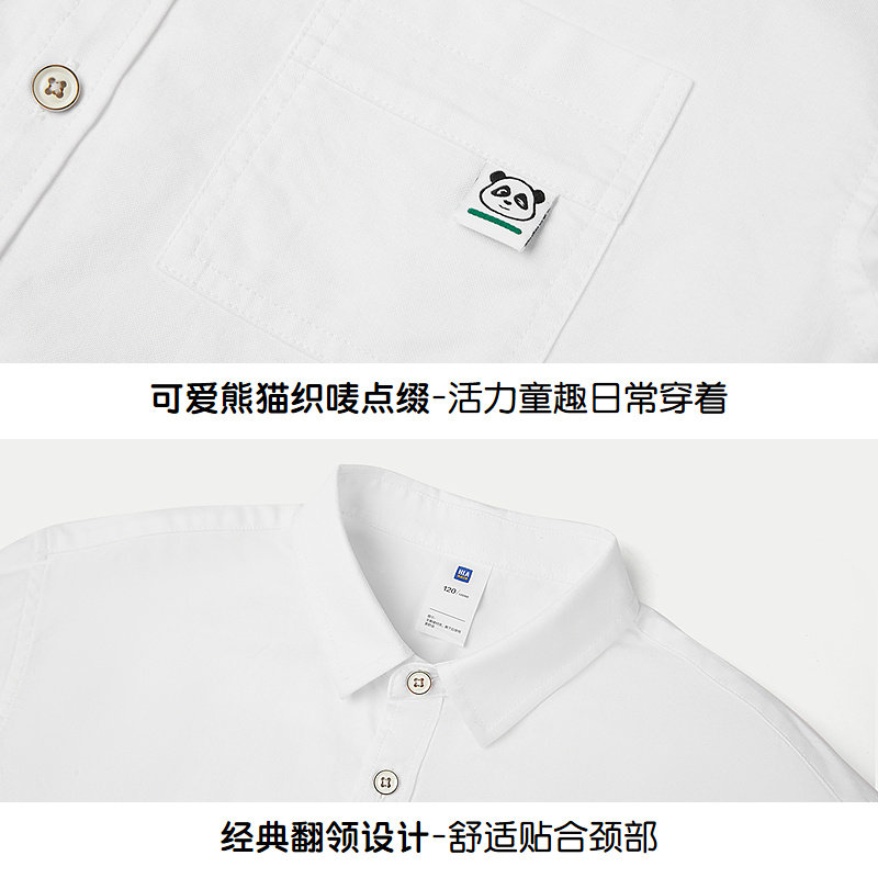 HLA/海澜之家panda wowo熊猫系列长袖衬衫25秋新款纯棉衬衣男女童