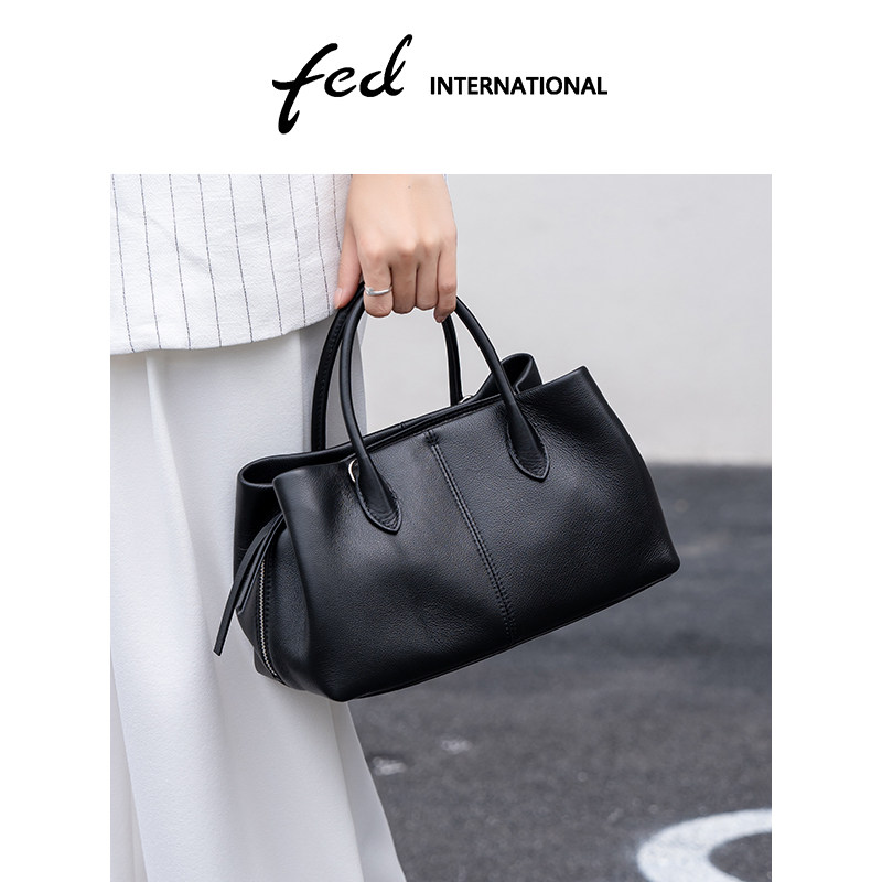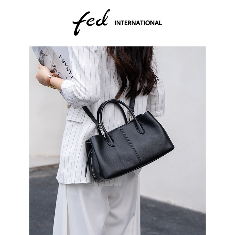 fed头层牛皮凯莉包通勤百搭大容量单肩手提斜挎包妈咪包包FA9334