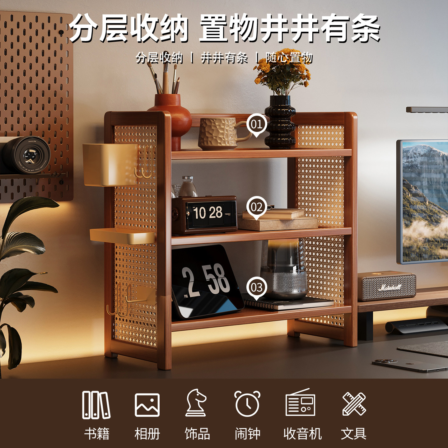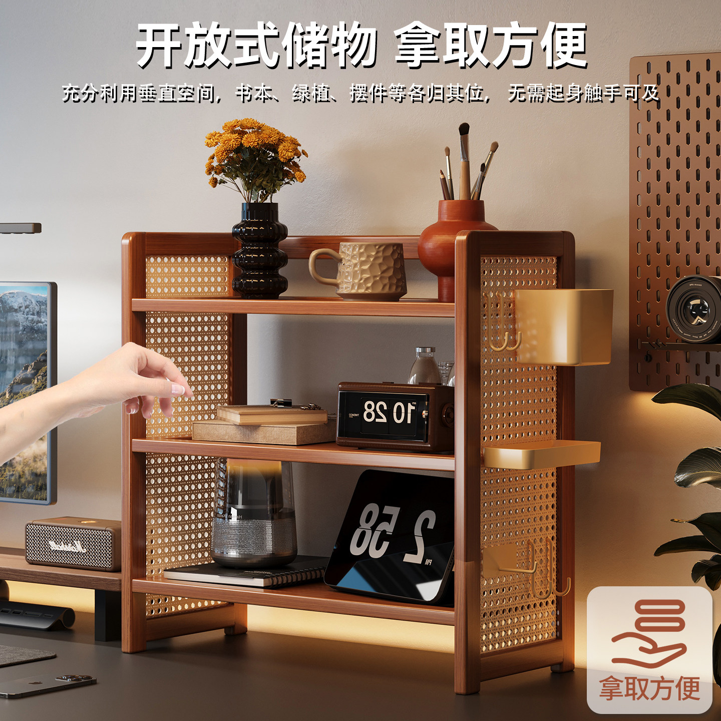 全实木桌面书架桌上置物架办公室收纳改造神器书桌分层伸缩小书柜