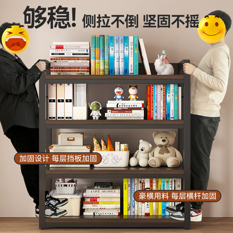 简易书架落地靠墙客厅置物架分层收纳架储物柜子一体简约家用书柜
